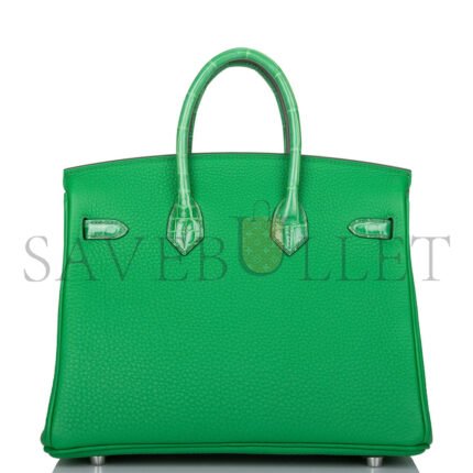HERM�S MASTER BIRKIN 25 CROCODILE AND TOGO LEATHER AVOCADO SILVER BUCKLE H076216CK32 (25*20*13cm)
