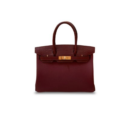 HERM�S MASTER BIRKIN 30 MATTE CROCODILE AND TOGO LEATHER BURGUNDY GOLD BUCKLE H076235CK39 (30*22*16cm)