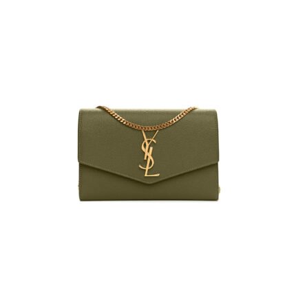 YSL UPTOWN CHAIN WALLET IN GRAIN DE POUDRE EMBOSSED LEATHER 6077881GF0J9207 (19*12*3cm)