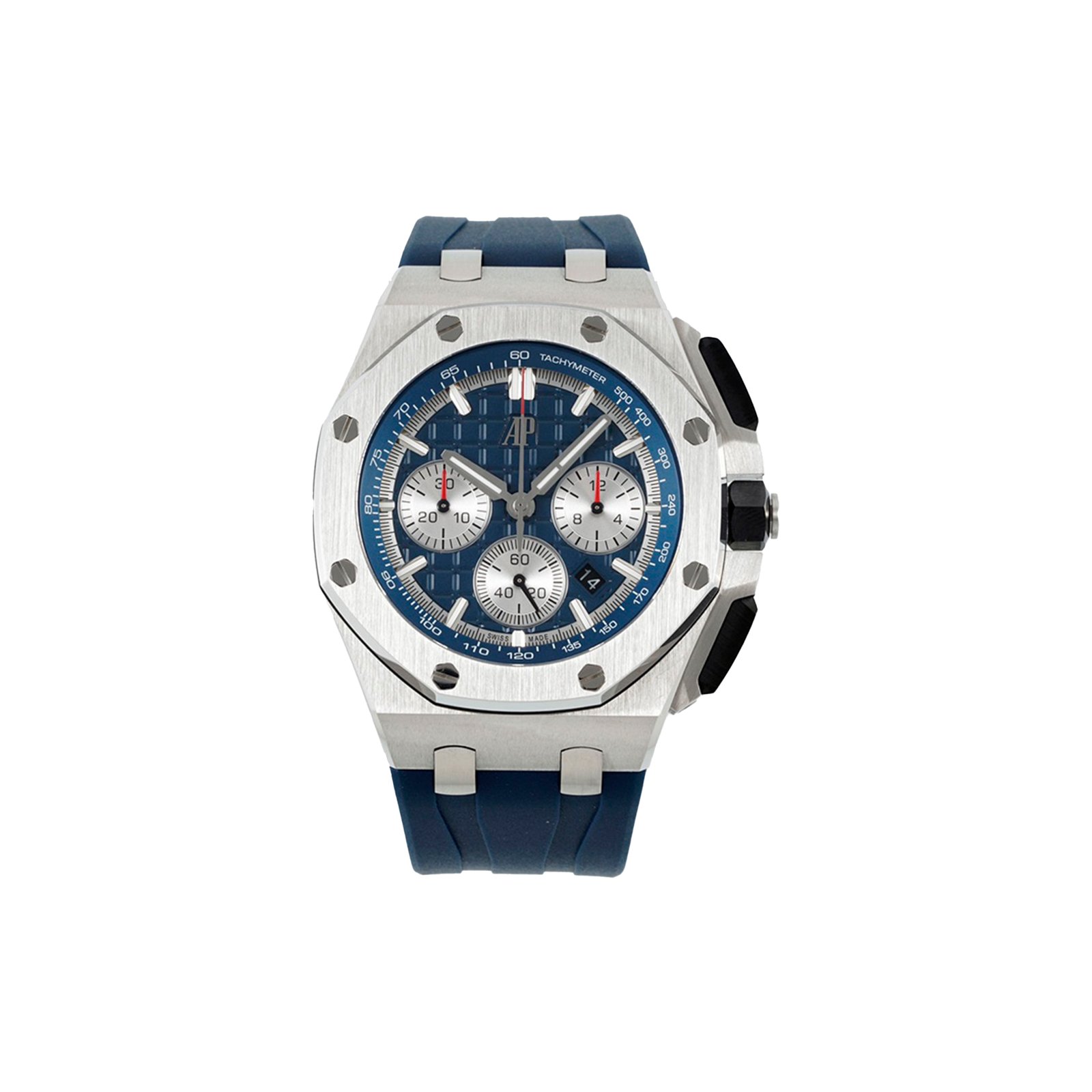 Bracelet:Blue rubber strap with titanium AP pin buckle and interchangeable strap system.�