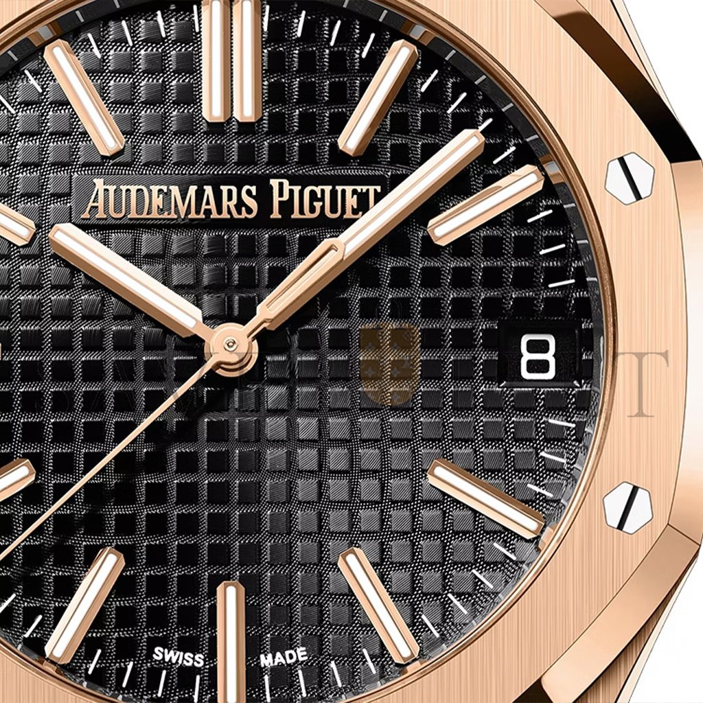 Dial:Black dial with ��Grande Tapisserie�� pattern, pink gold applied hour-markers and Royal Oak hands with luminescent coating.
