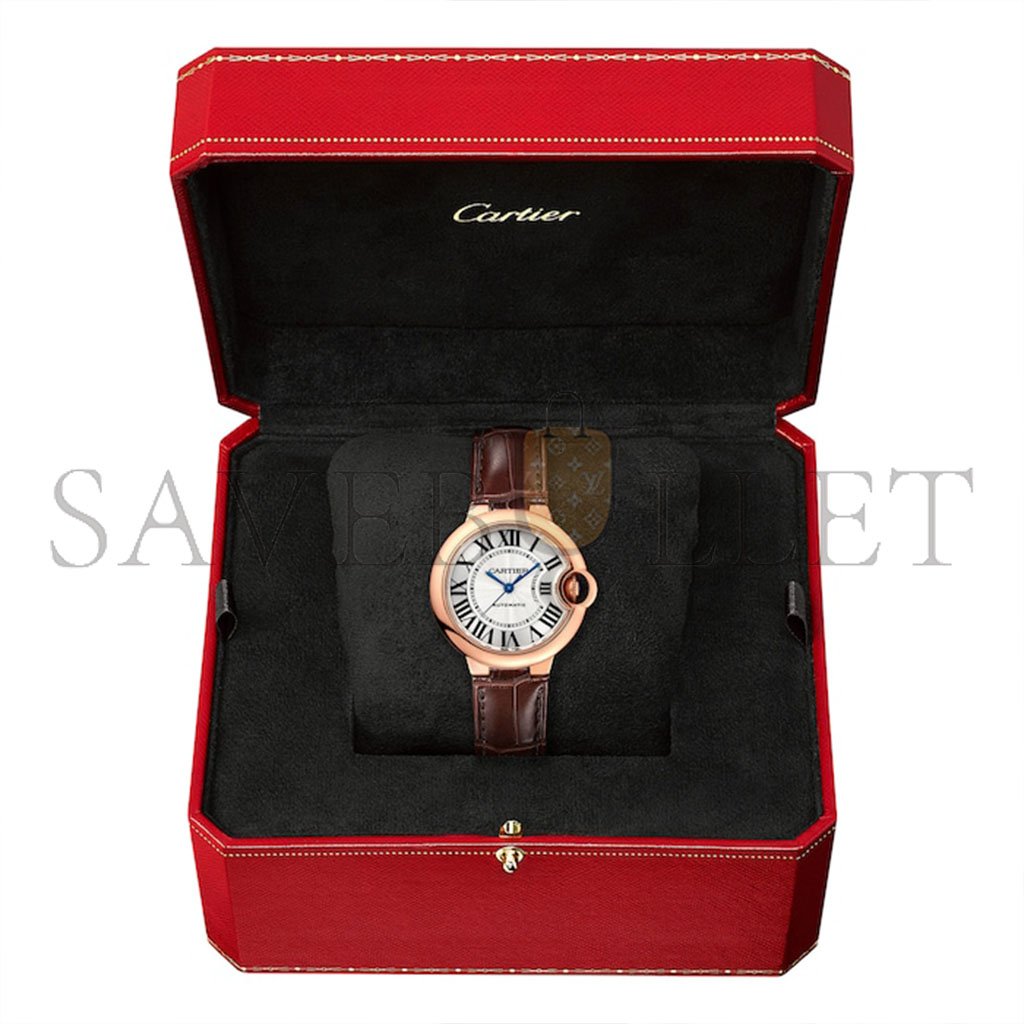 CARTIER BALLON BLEU DE CARTIER WATCH 33MM, AUTOMATIC MOVEMENT, ROSE GOLD, LEATHER W6920097