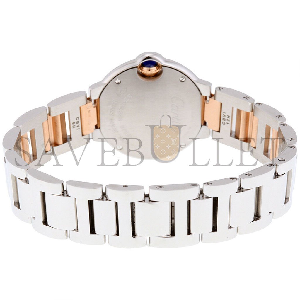 CARTIER BALLON BLEU MOTHER OF PEARL STAINLESS STEEL AND 18KT ROSE GOLD LADIES WATCH W2BB0009