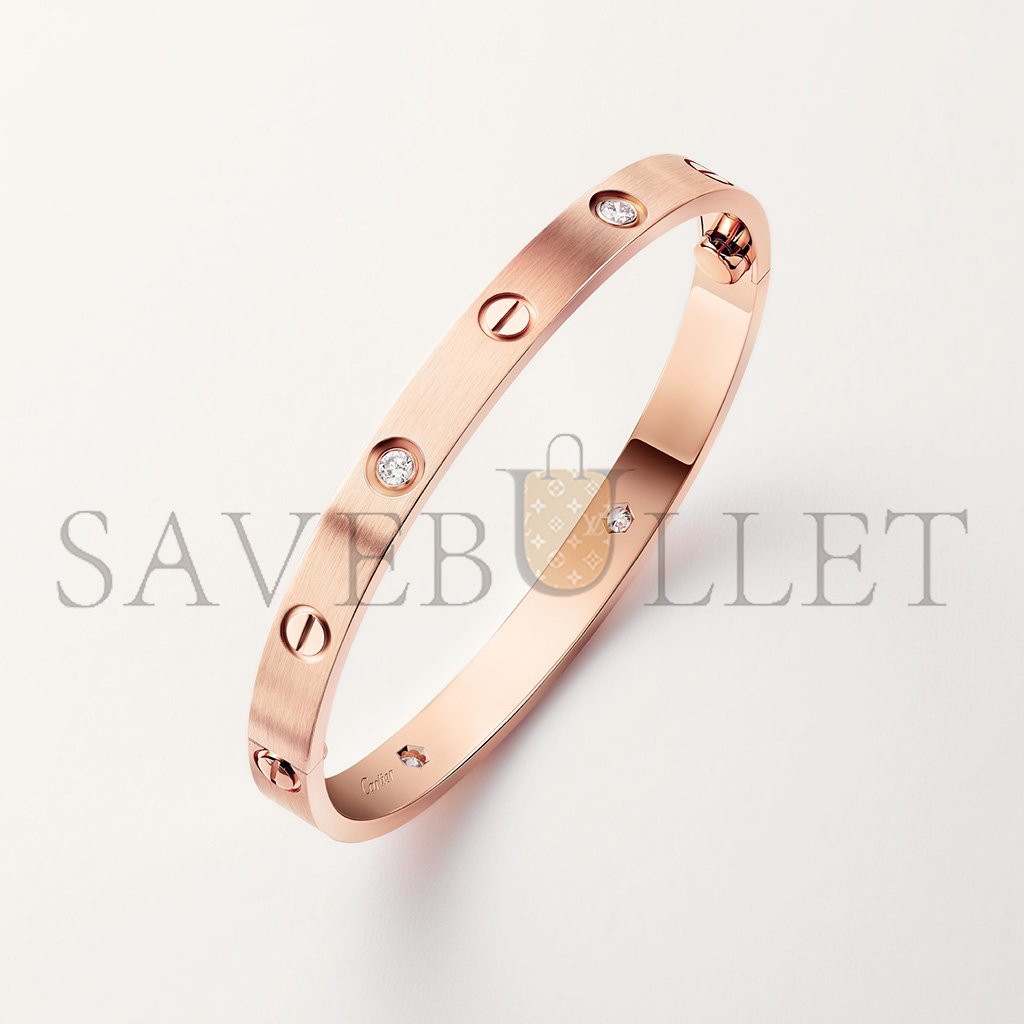 Bracelet LOVE, mod猫le classique, or rose 750/1000, finition bross茅e, serti de 4 diamants taille brillant pour 0.42 carat.