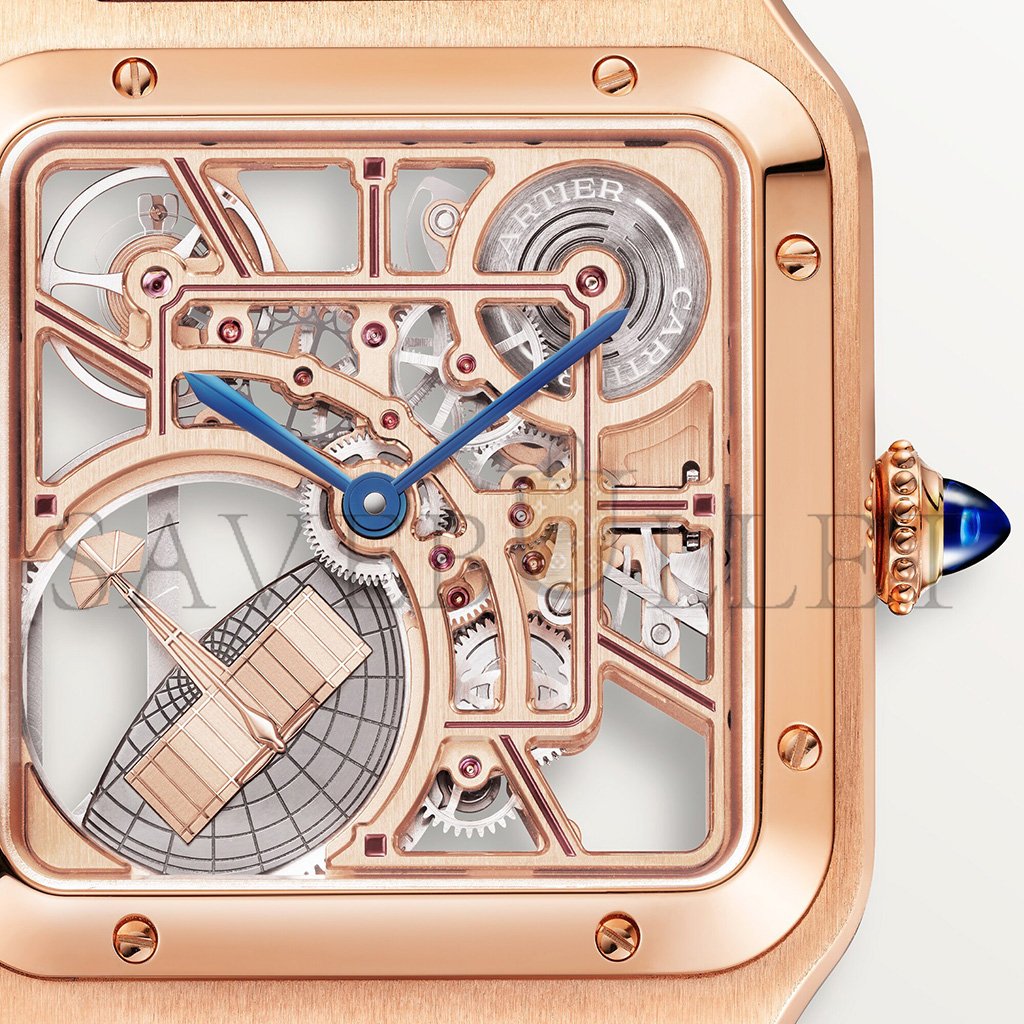 Santos-Dumont micro-rotor skeleton watch, large model, 31 mm, automatic mechanical movement, 9629 MC.