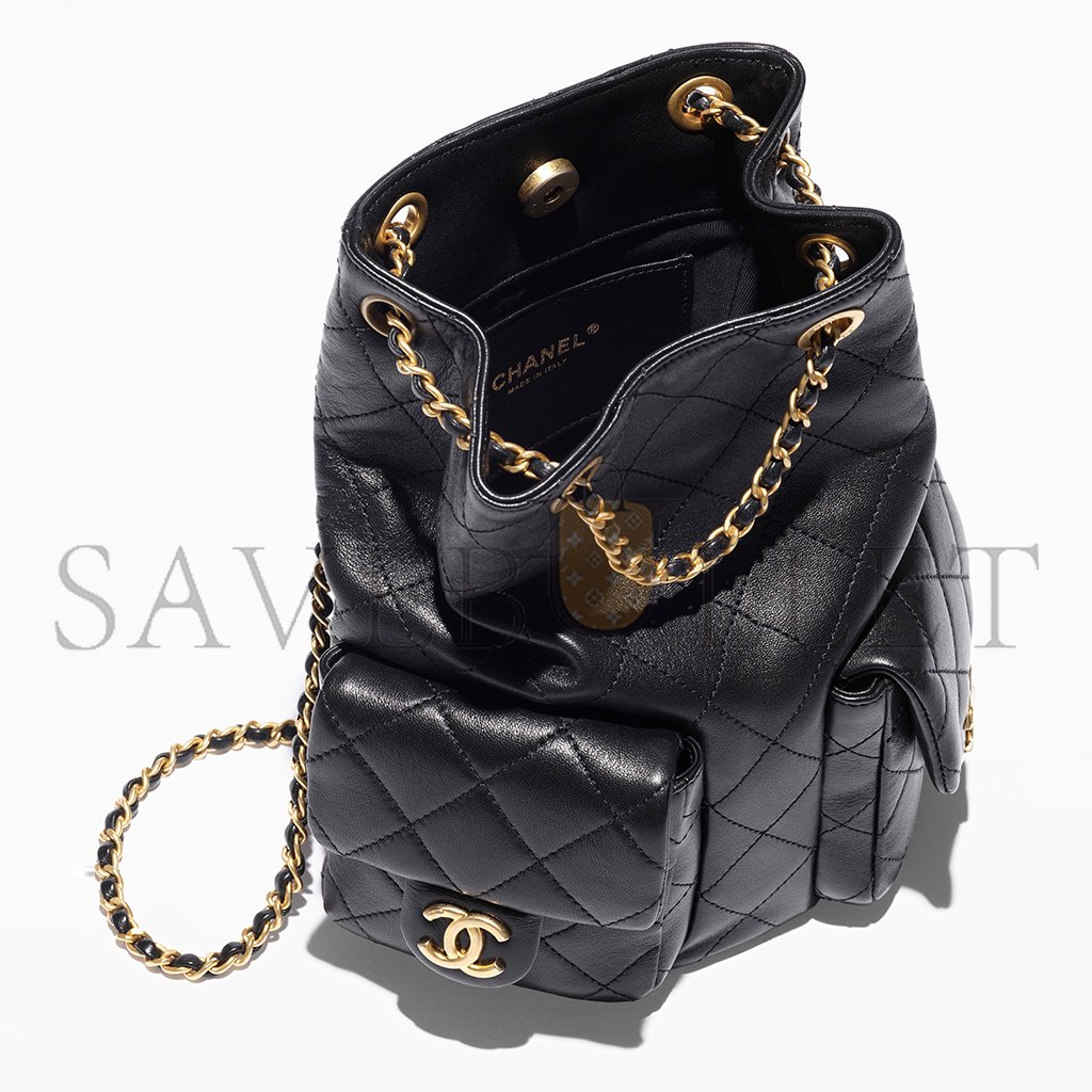 CHANEL BLACK BACKPACK SHINY LAMBSKIN & GOLD-TONE METAL AS5310 (24*18*7cm)