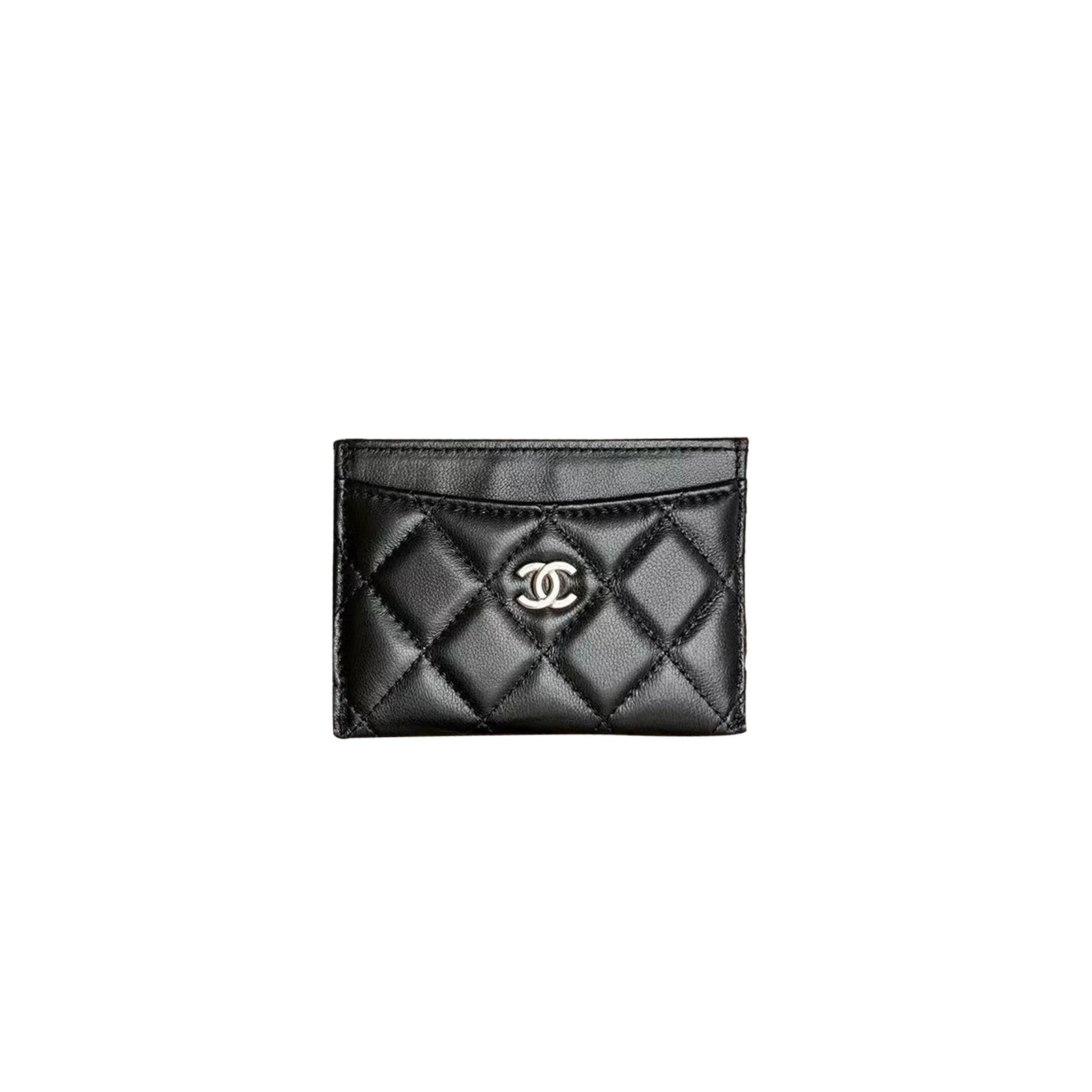 CHANEL BLACK LAMBSKIN CLASSIC QUILTED CARD HOLDER WALLET SILVER HARDWARE A31510锛�11*7.5*1cm锛�