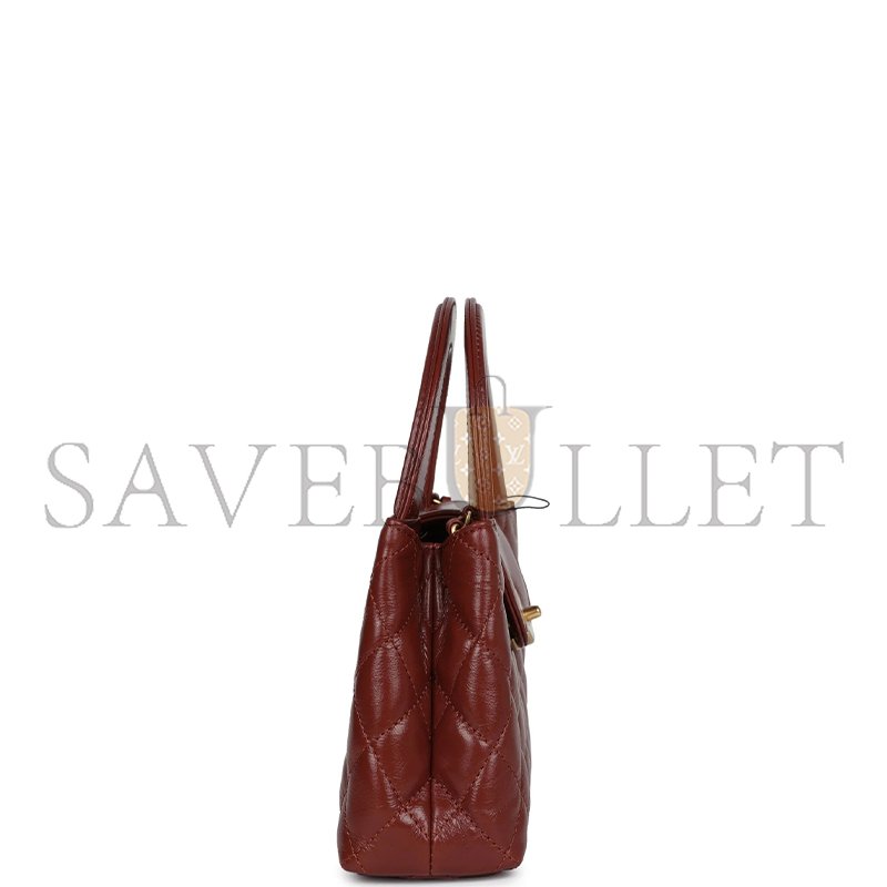 CHANEL BROWN QUILTED AGED CALFSKIN MINI KELLY BRUSHED GOLD HARDWARE AS4416 (19*13*7cm)