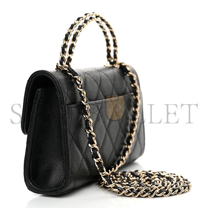 CHANEL CAVIAR QUILTED CHAIN TOP HANDLE WITH CHAIN BLACK (18*10*4cm)