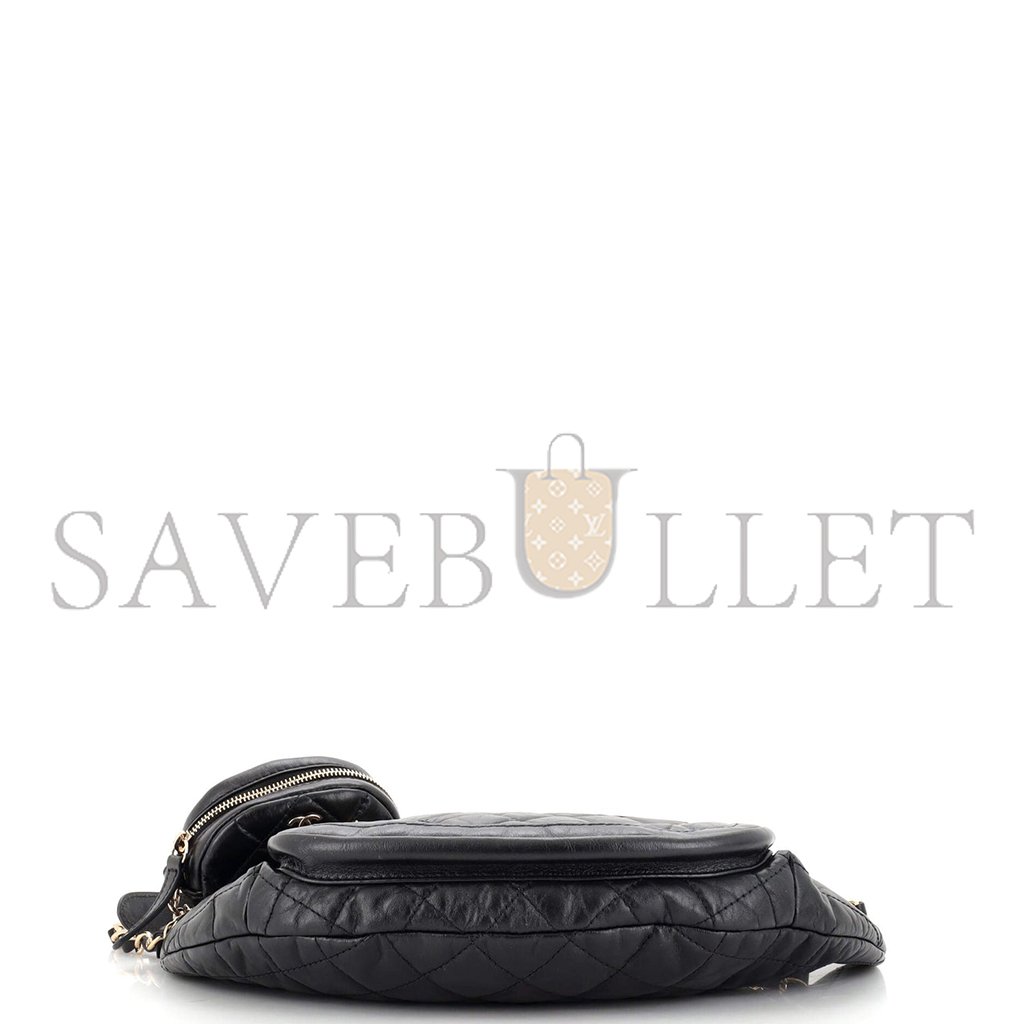 CHANEL FRONT ZIP WAIST BAG WITH COIN PURSE QUILTED AGED CALFSKIN AS1077 (34*15*6cm)