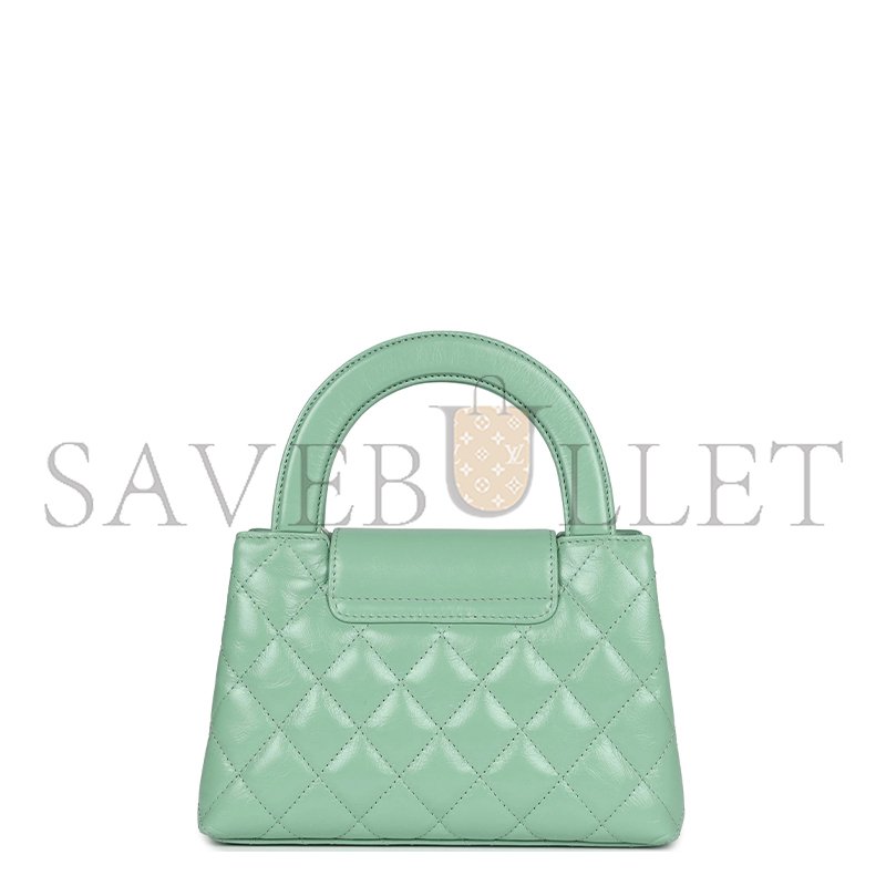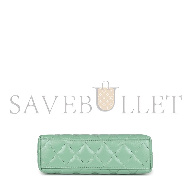 CHANEL KELLY SHOPPER LIGHT GREEN SHINY AGED CALFSKIN BRUSHED GOLD HARDWARE AS4416 (19*13*7cm)