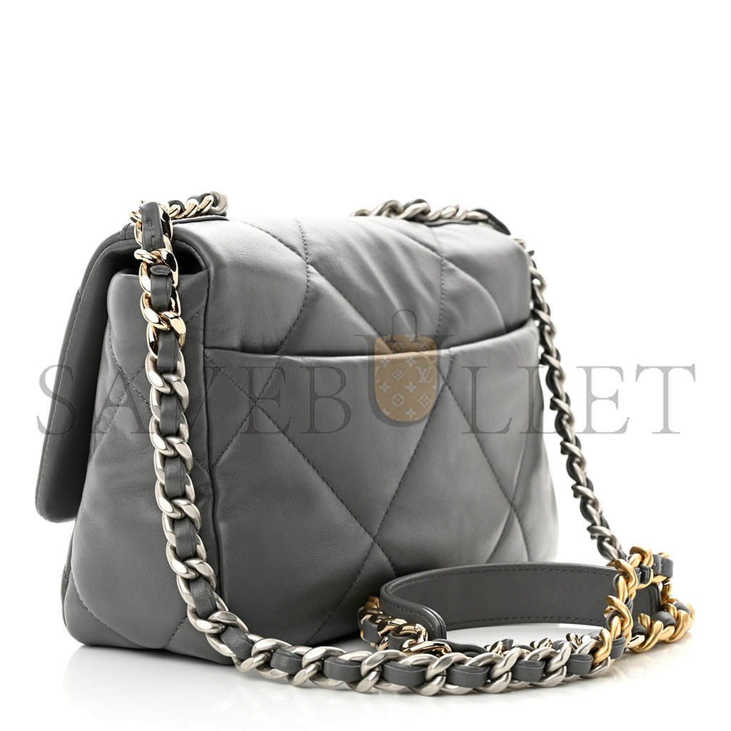CHANEL LAMBSKIN QUILTED MEDIUM CHANEL 19 FLAP GREY AS1160 (26*16*9cm)