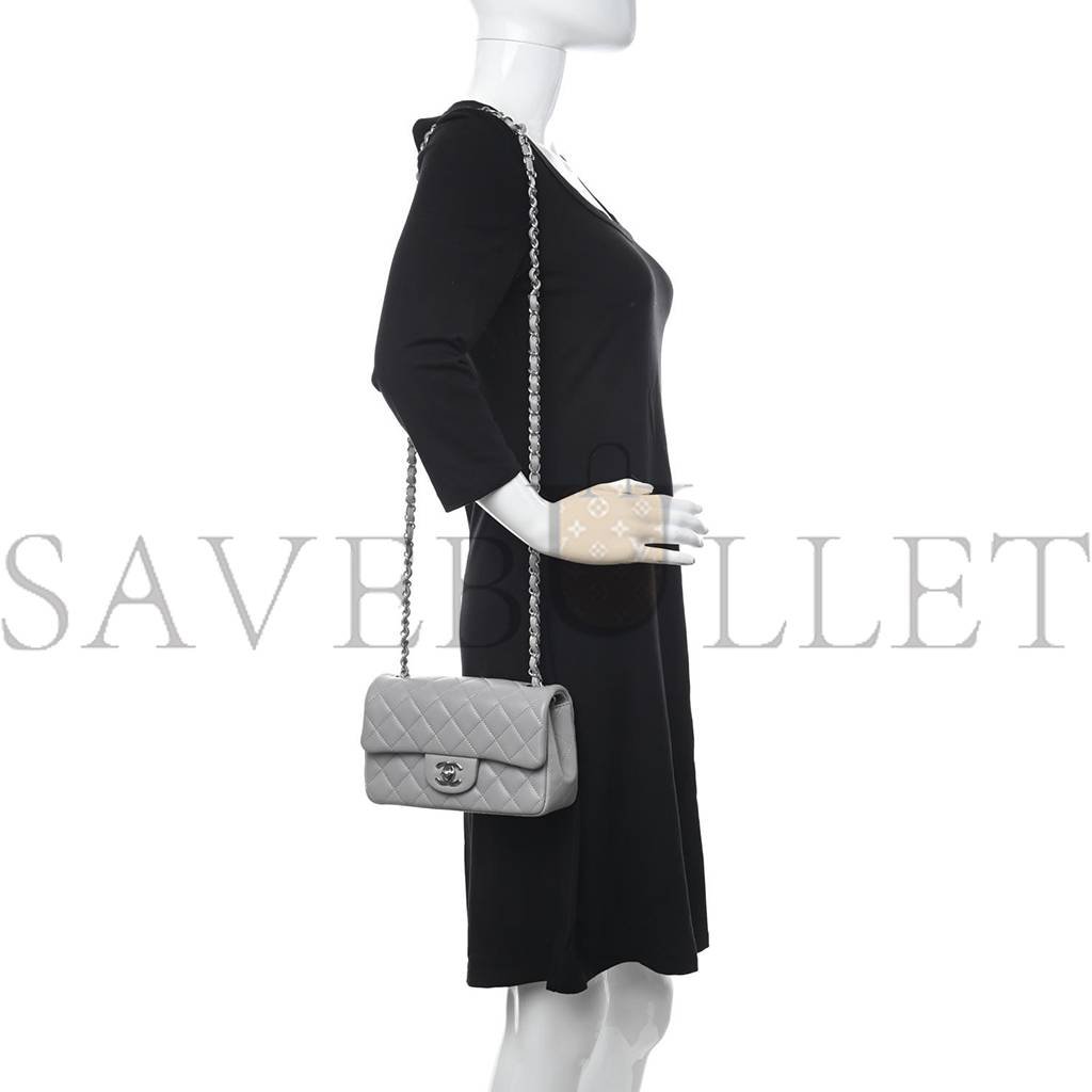 CHANEL LAMBSKIN QUILTED MINI RECTANGULAR FLAP GREY SILVER HARDWARE (20*12*6cm)