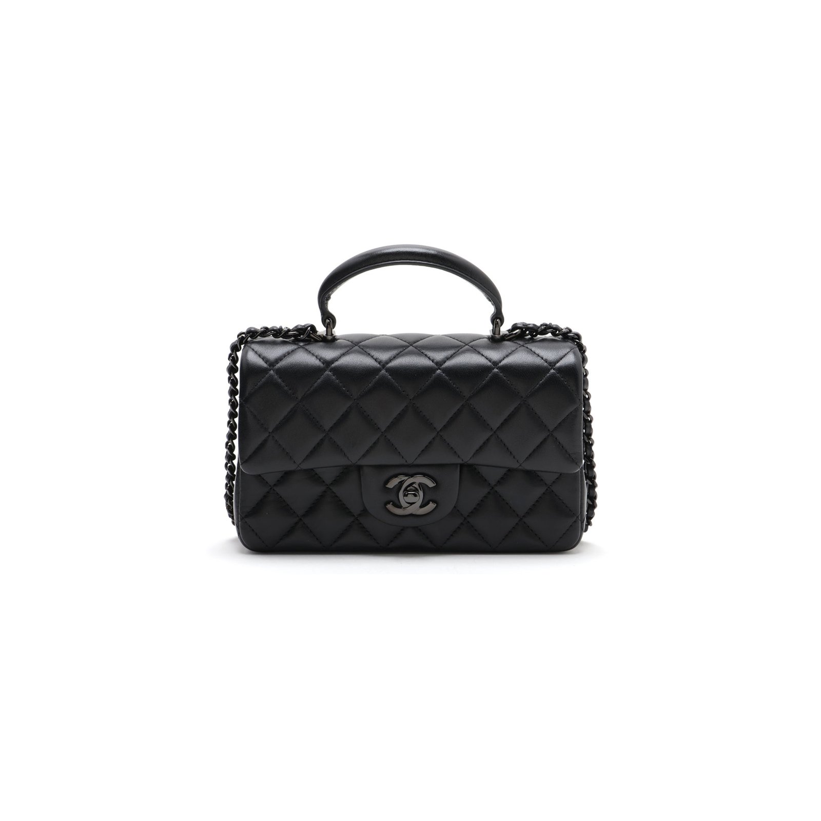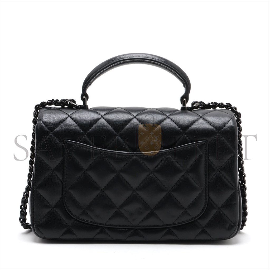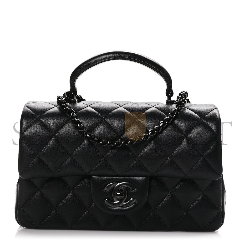 CHANEL LAMBSKIN QUILTED MINI TOP HANDLE RECTANGULAR FLAP SO BLACK AS2431 (20*12*6cm)