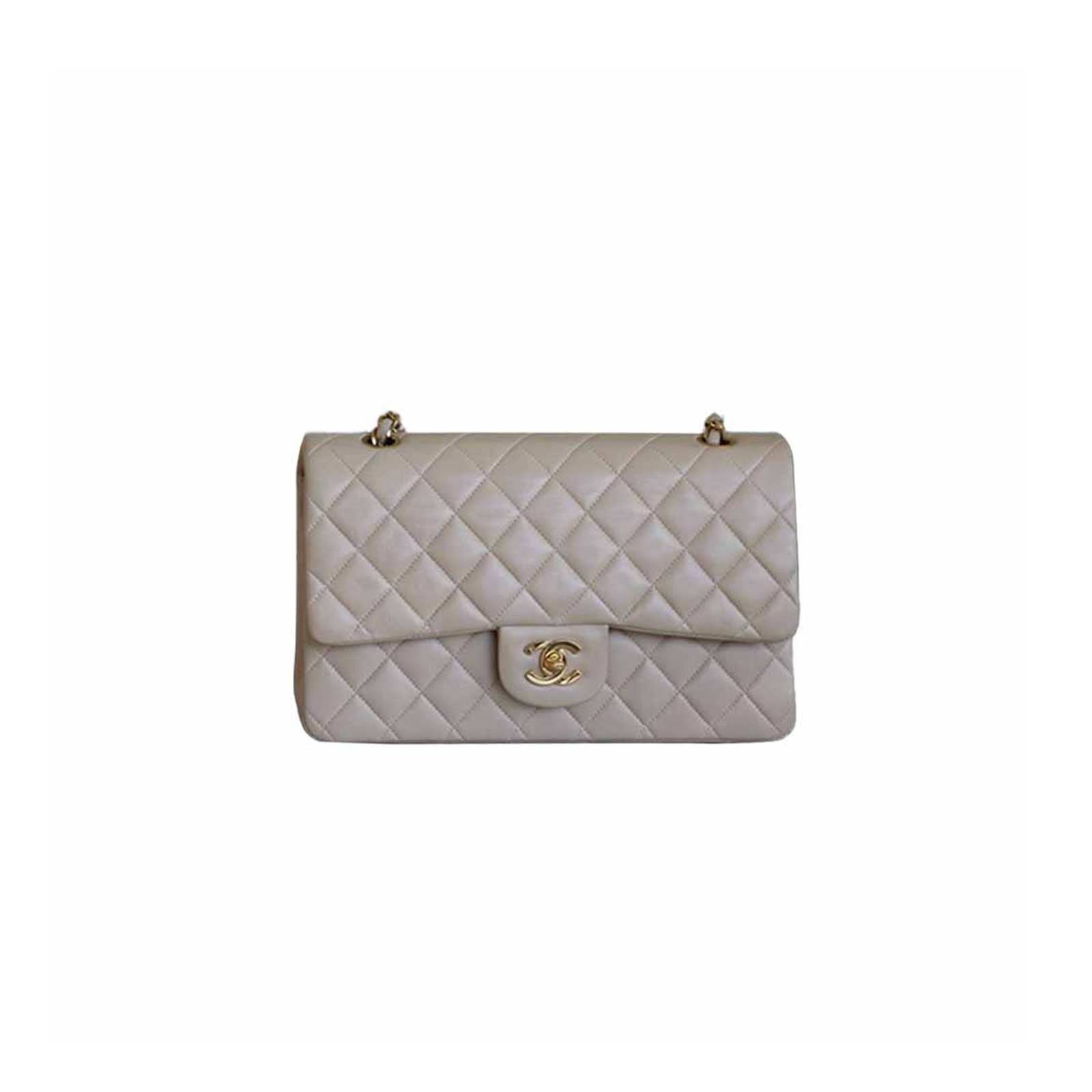 CHANEL BEIGE CLASSIK DOUBLE FLAP BAG (23*14*6cm)