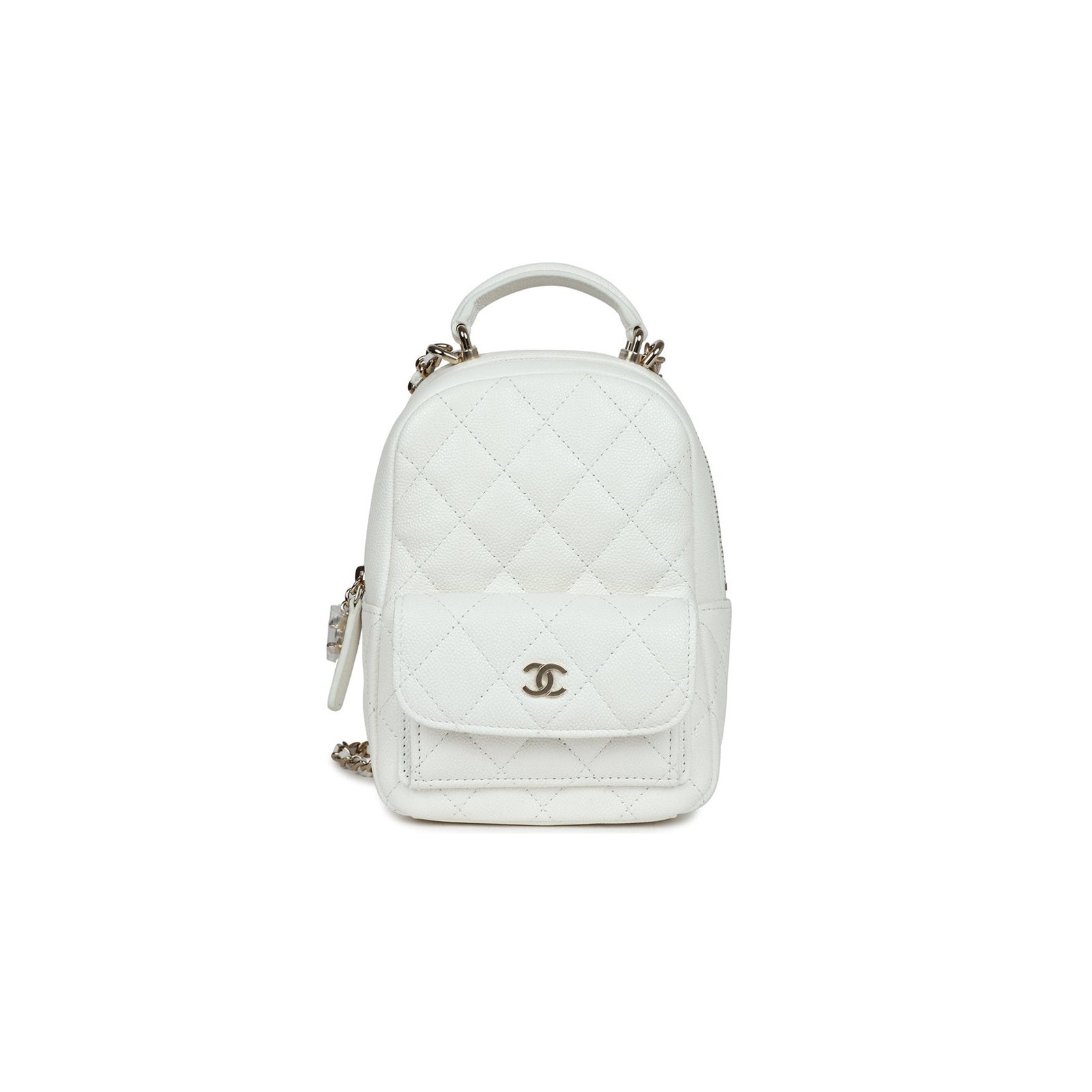 CHANEL MINI PHONE HOLDER BACKPACK WHITE CAVIAR LIGHT GOLD HARDWARE AP3753 (18*13*9cm)