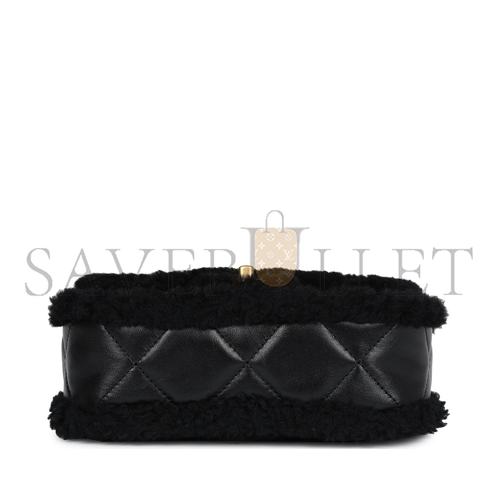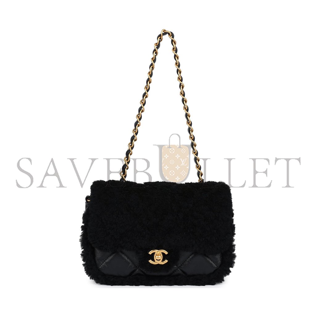 CHANEL MINI SHEARLING FLAP BAG BLACK LAMBSKIN BRUSHED GOLD HARDWARE AS5148 (18*12*6cm)