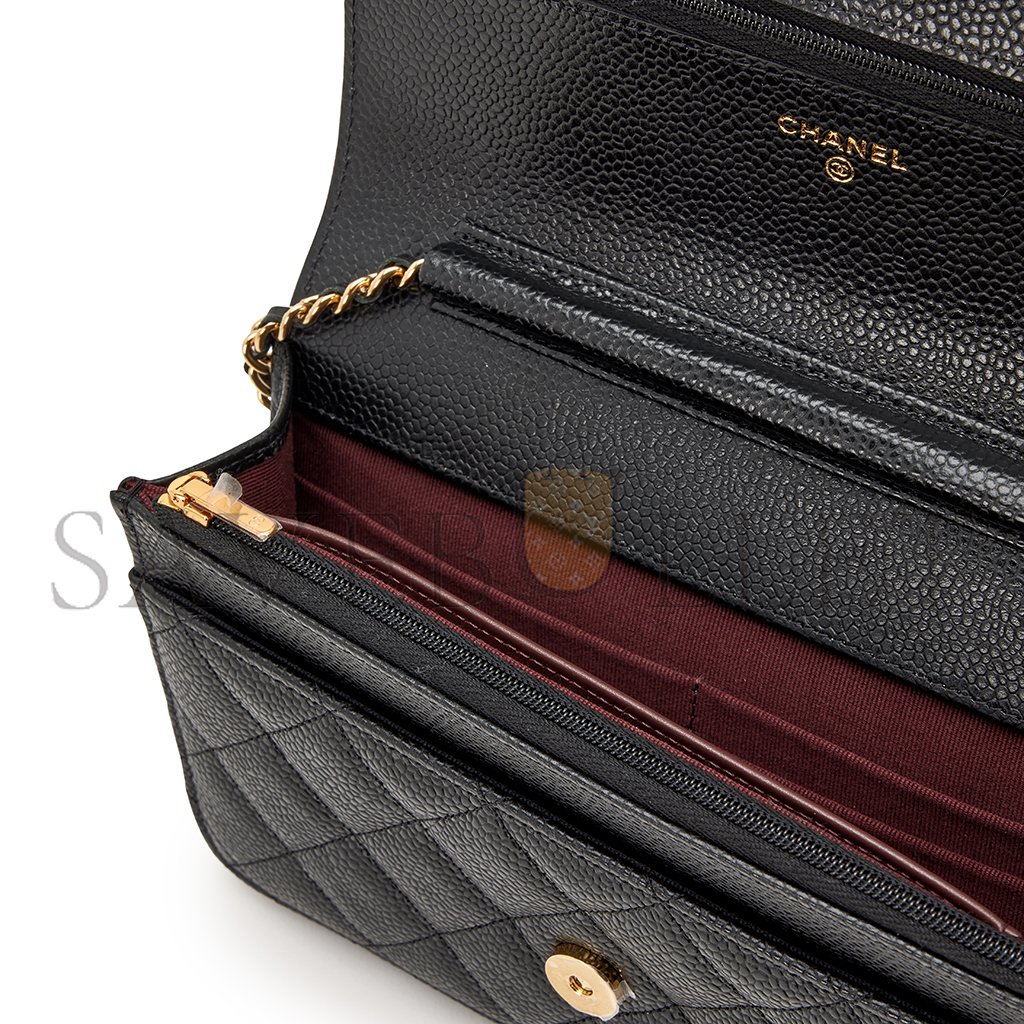 CHANEL QUILTED CAVIAR WALLET ON CHAIN WOC BLACK GOLD HARDWARE A33814 (19*12*3cm)