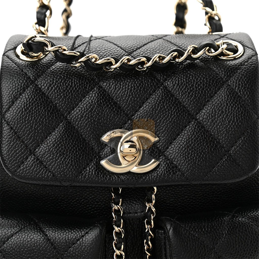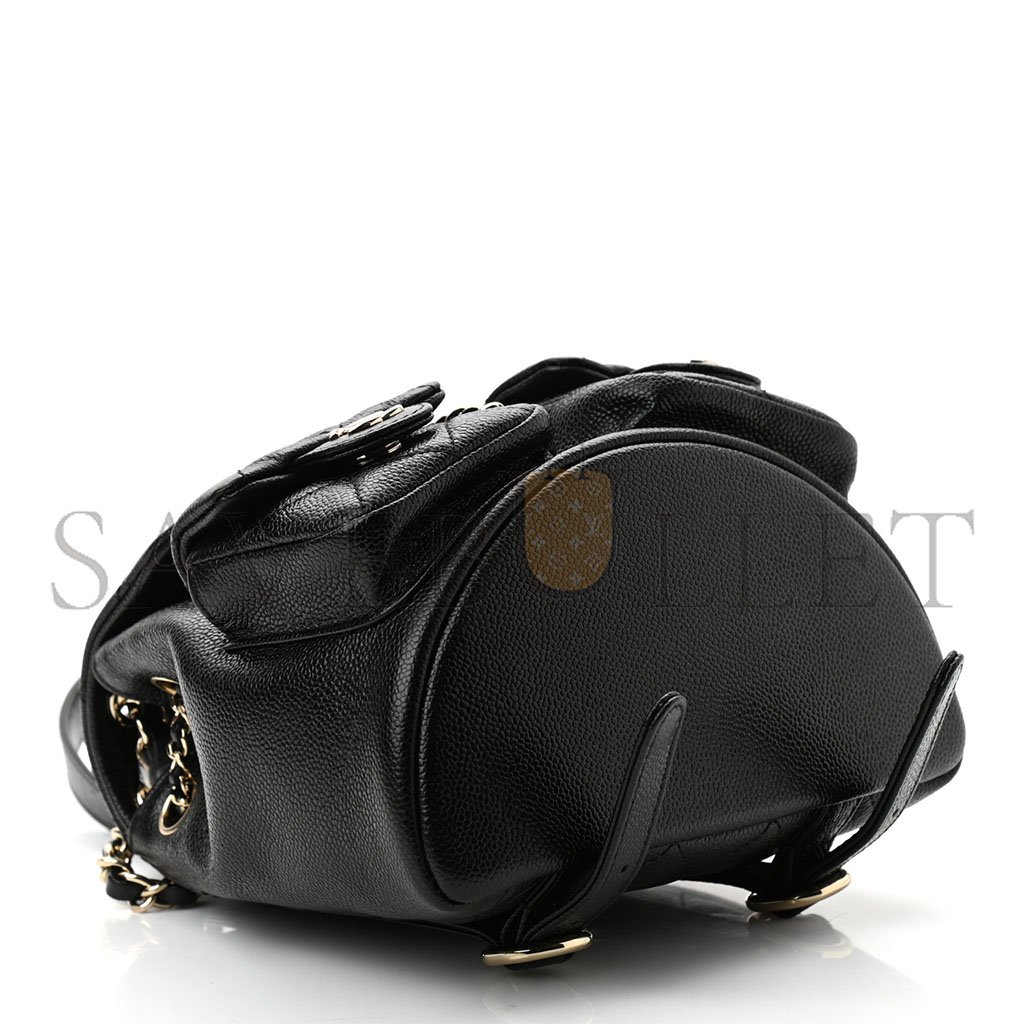 CHANEL SHINY CAVIAR QUILTED SMALL DUMA POCKETS DRAWSTRING BACKPACK BLACK AS3787 (17.5*16.5*10cm)