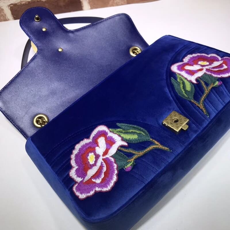 Gucci GG Marmont Embroidered Modern And Rose Velvet Chevron Shoulder Bag 443496