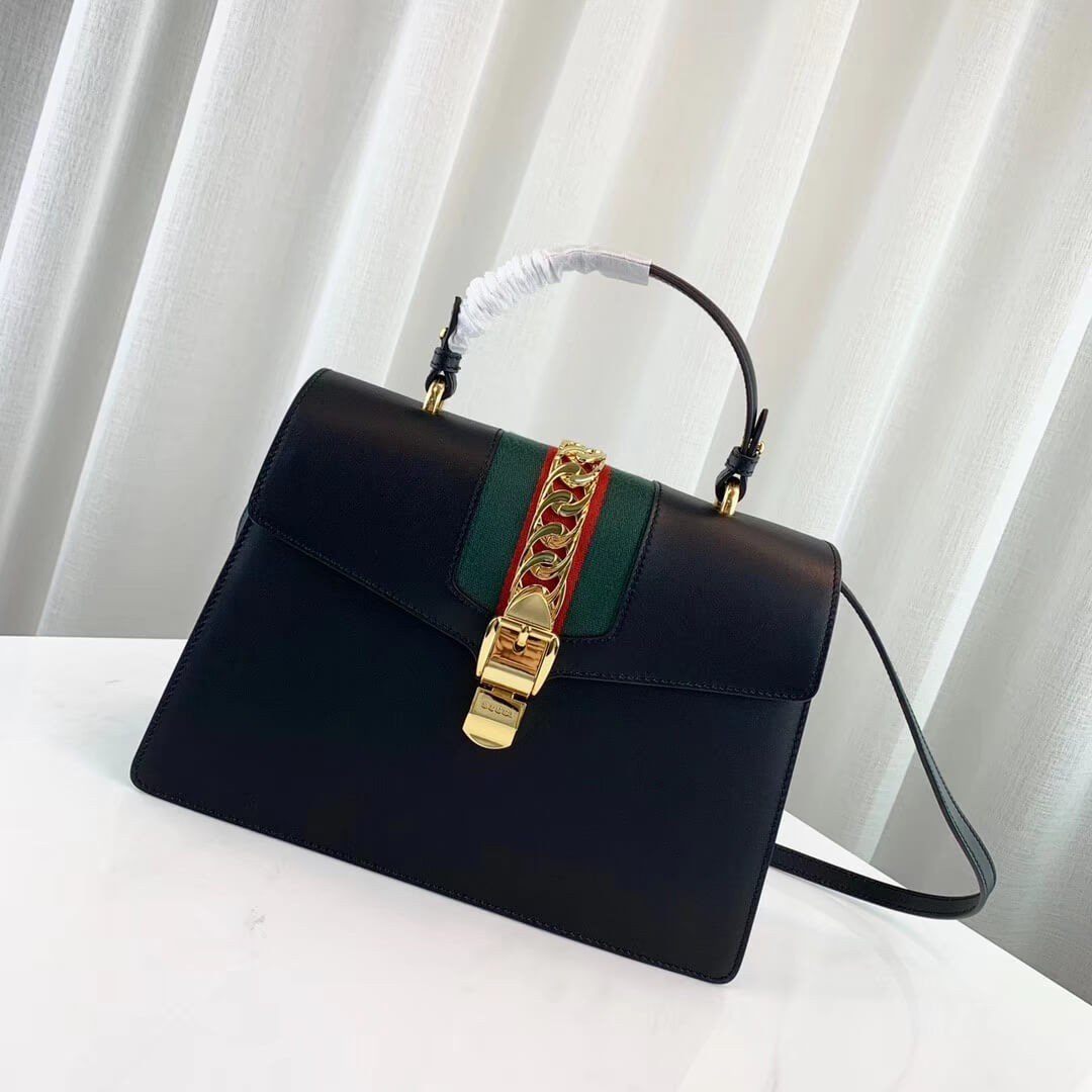 Our Sylvie bag in a beautiful top handle shape with our nylon Web embedded under the leather and decorated with a gold chain and buckle. Made in our smooth, classic leather.