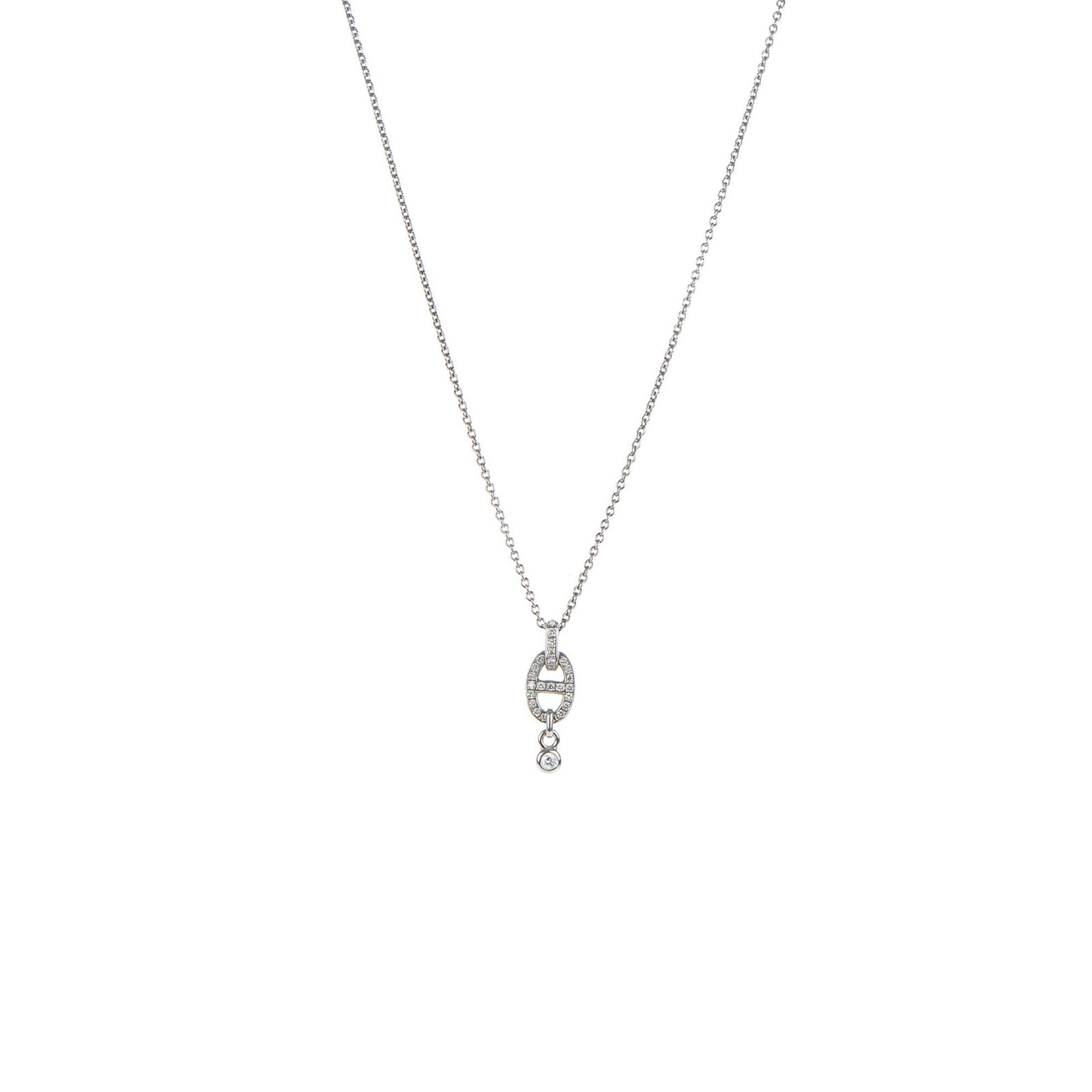 HERM�S 18K WHITE GOLD DIAMOND PM CHAINE D’ANCRE ENCHAINEE NECKLACE