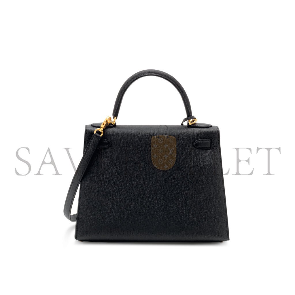 HERM�S MASTER A BLACK EPSOM LEATHER SELLIER KELLY 25 WITH PALLADIUM HARDWARE (25*17*7cm)