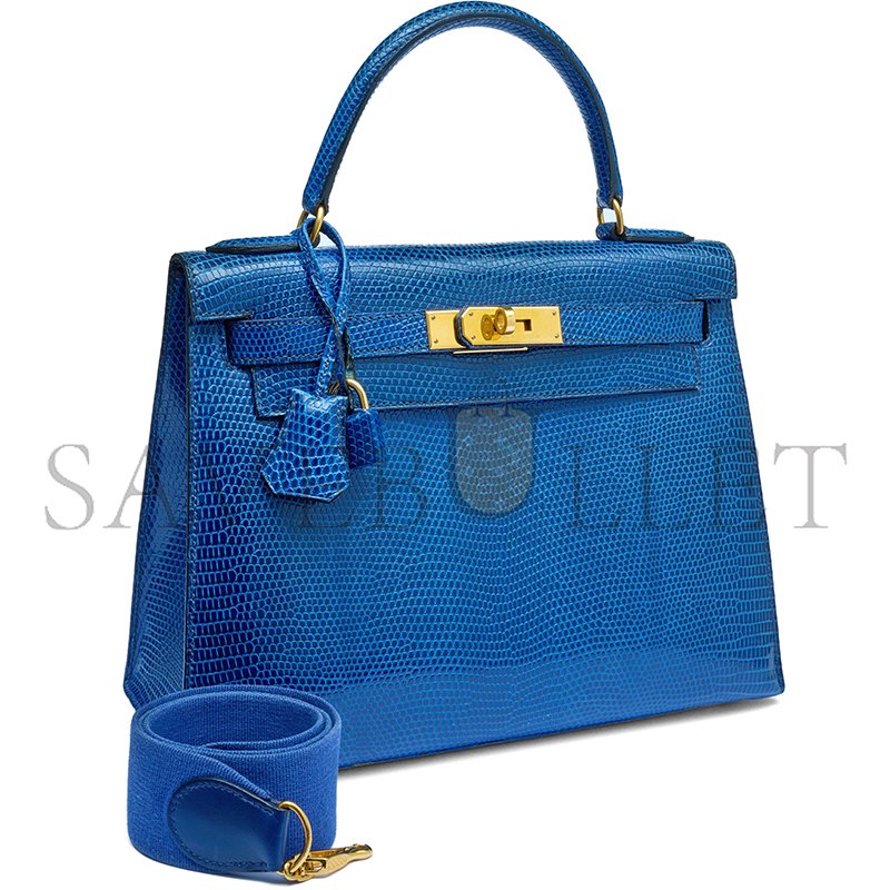 HERM�S MASTER A SHINY BLEU ROI NILOTICUS LIZARD SELLIER KELLY 28 WITH GOLD HARDWARE (28*22*10cm)