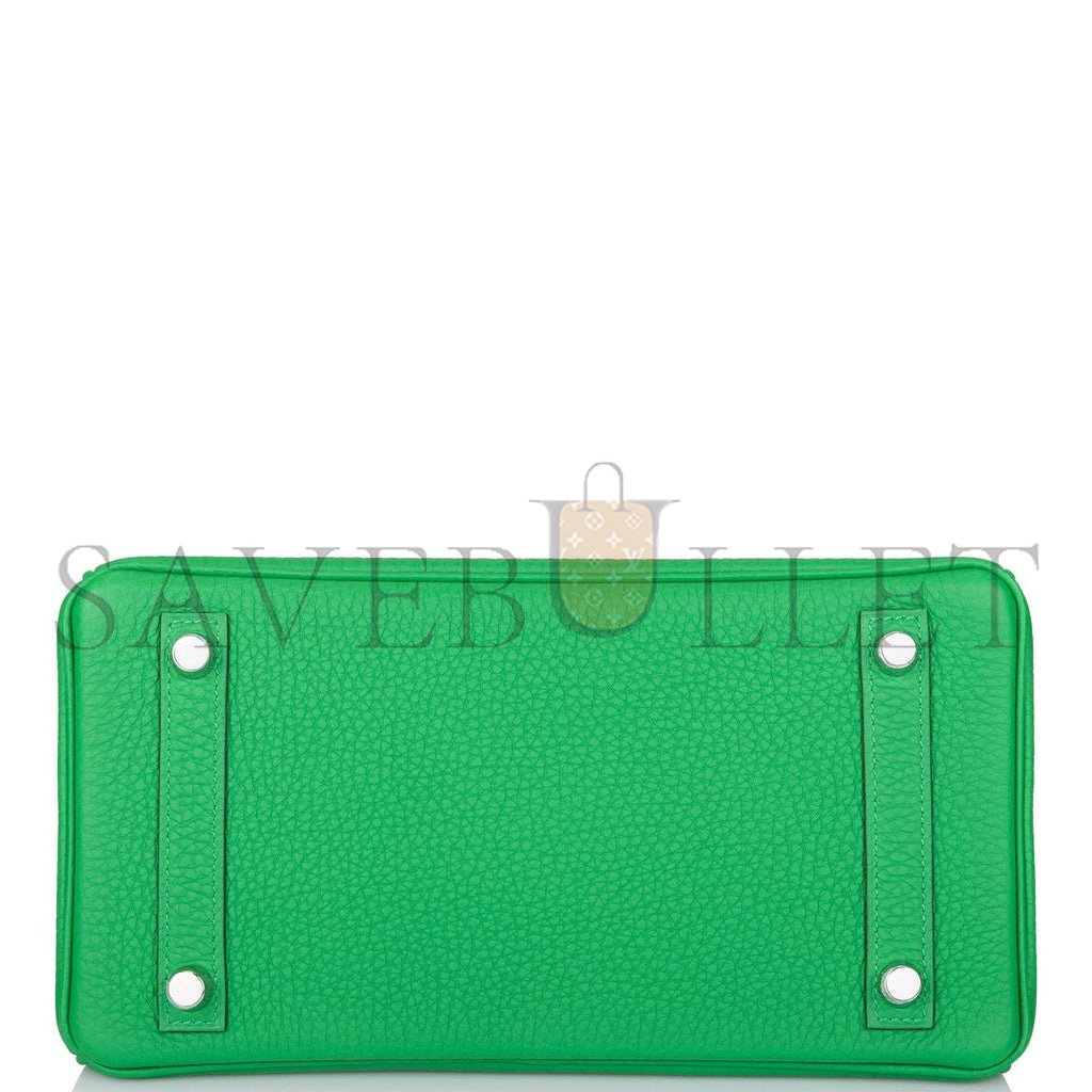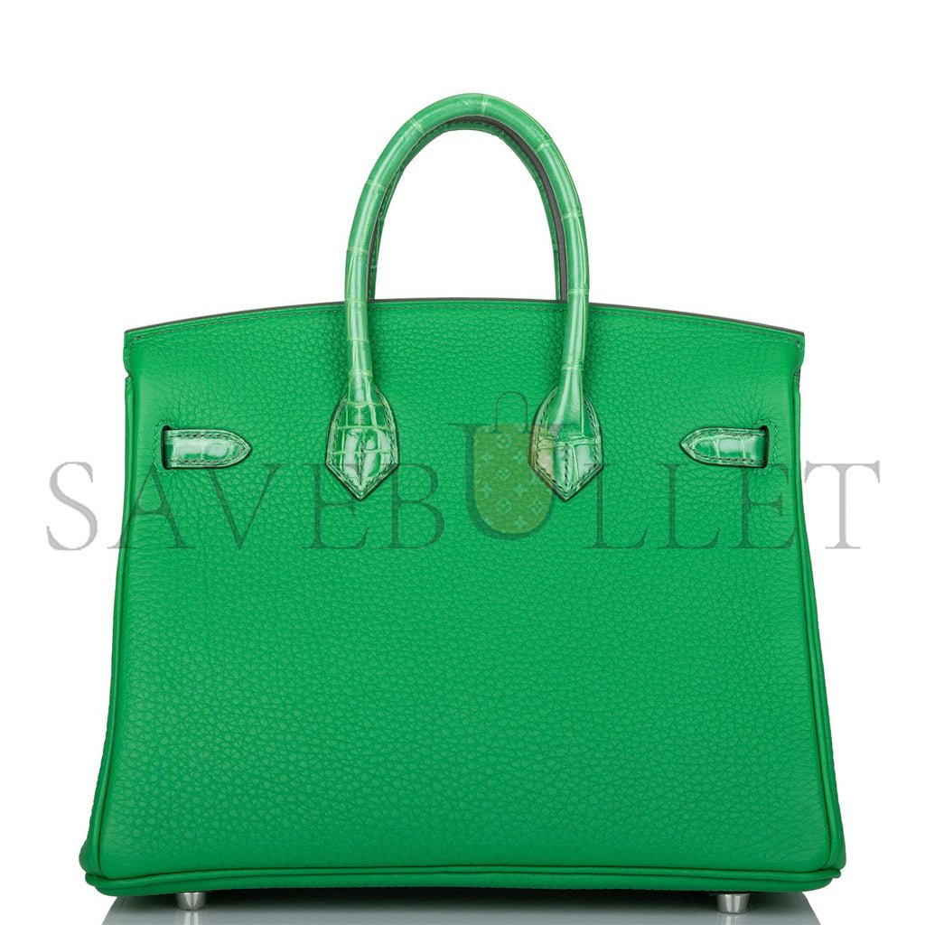 HERM�S MASTER BIRKIN 25 CROCODILE AND TOGO LEATHER BAMBOO GREEN SILVER BUCKLE H076216CK21 (25*20*13cm)