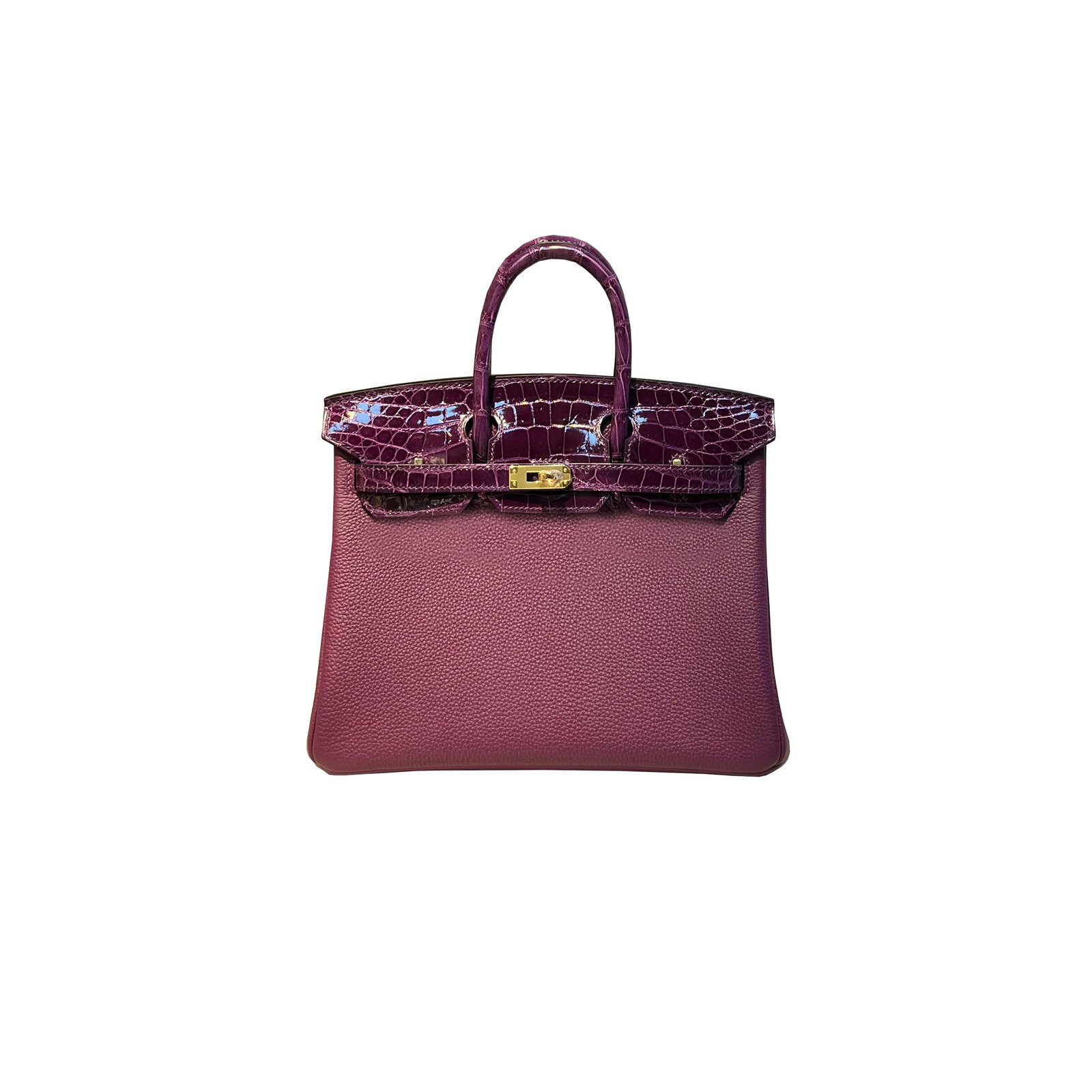 HERM�S MASTER BIRKIN 25 CROCODILE AND TOGO LEATHER GRAPE PURPLE GOLD BUCKLE H076216CK43 (25*20*13cm)