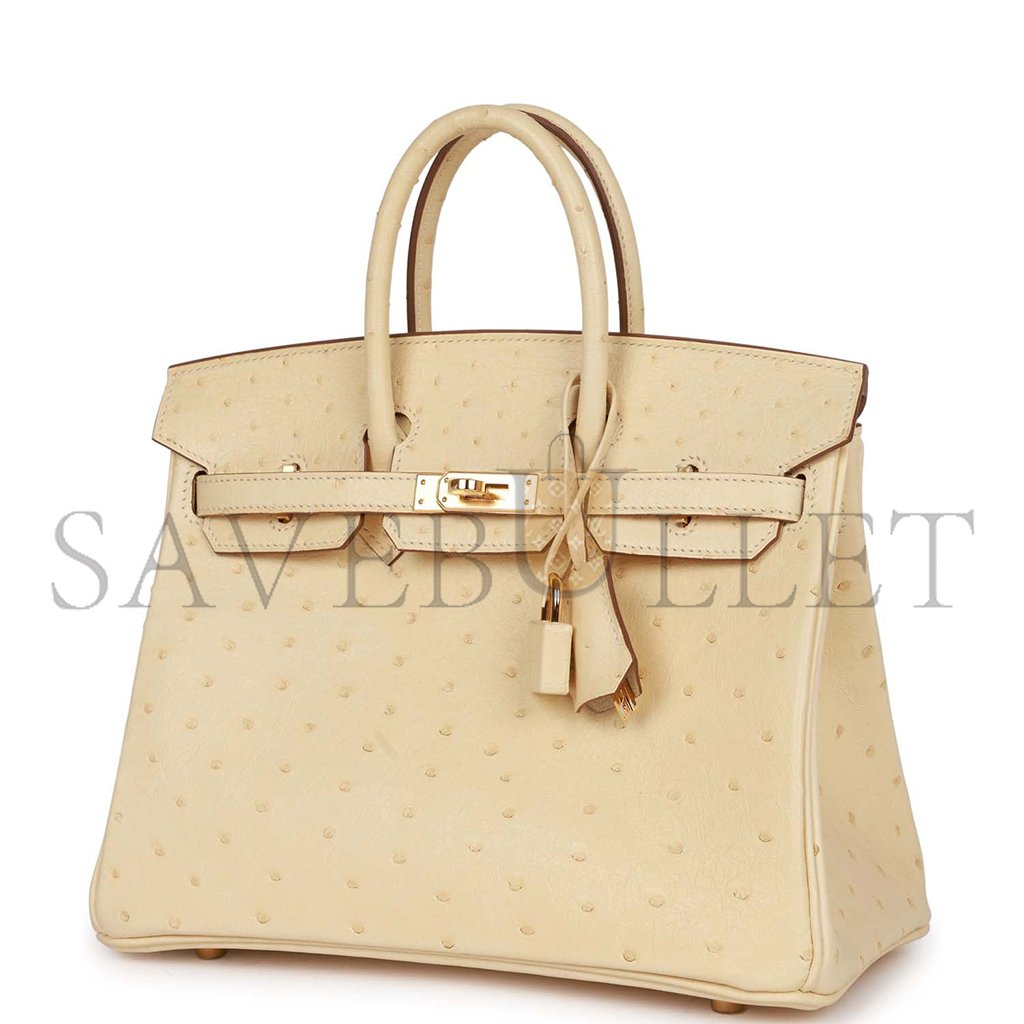 HERM�S MASTER BIRKIN 25 OSTRICH LEATHER MILK TEA COLOR GOLD BUCKLE H041944CK98 (25*20*13cm)
