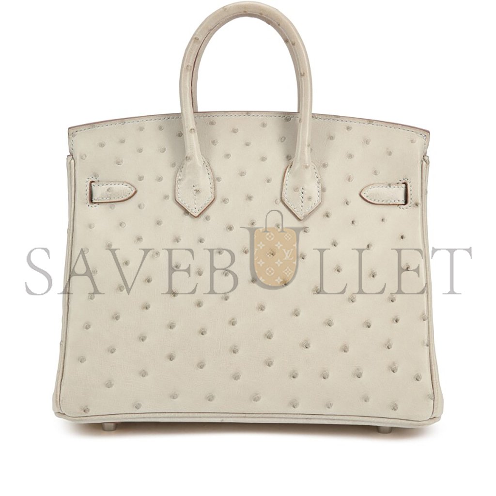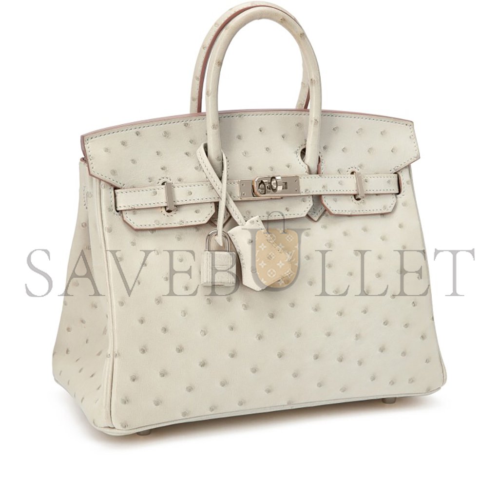 HERM�S MASTER BIRKIN 25 OSTRICH LEATHER MILKSHAKE WHITE SILVER BUCKLE H041944CK96 (25*20*13cm)