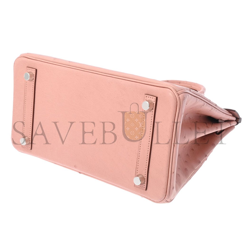 HERM�S MASTER BIRKIN 25 OSTRICH PORCELAIN POWDER SILVER BUCKLE H041944CK81 (25*20*13cm)