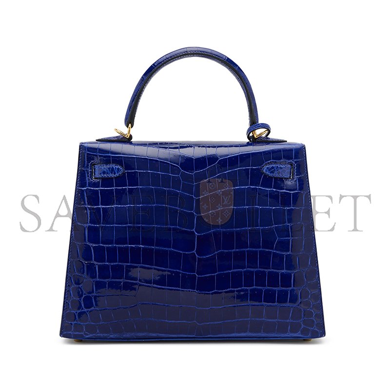 HERM�S MASTER ELECTRIC SHINY BLUE CROCODILE KELLY 25 GOLD HARDWARE (25*17*7cm)