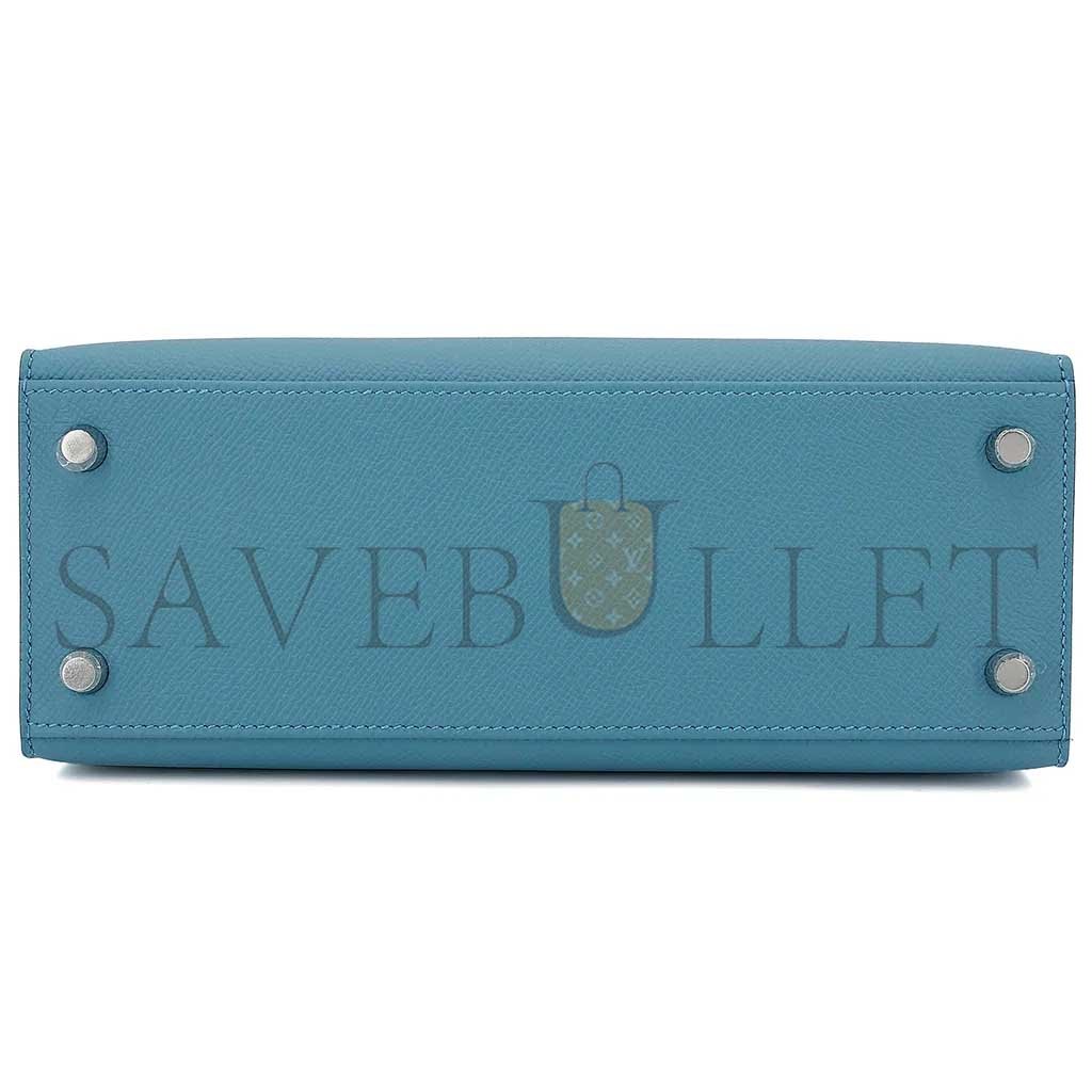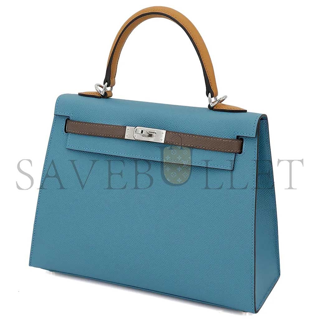HERM�S MASTER KELLY 25 BARK COLOR 2S SESAME DENIM BLUE EPSOM SILVER BUCKLE (25*17*7cm)