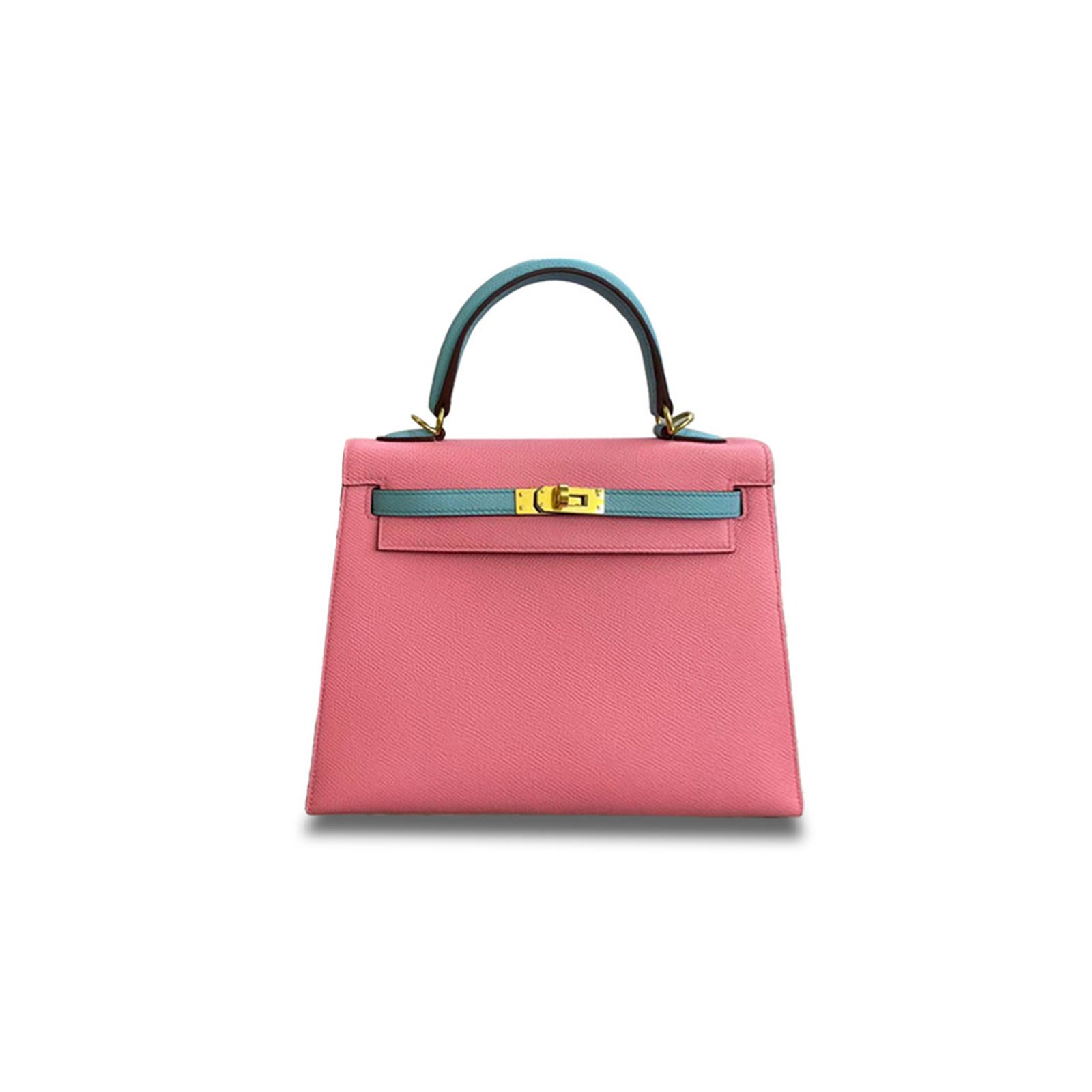 HERM�S MASTER KELLY 25 EPSOM MILKSHAKE POWDER BLUE AND GOLD (25*17*7cm)