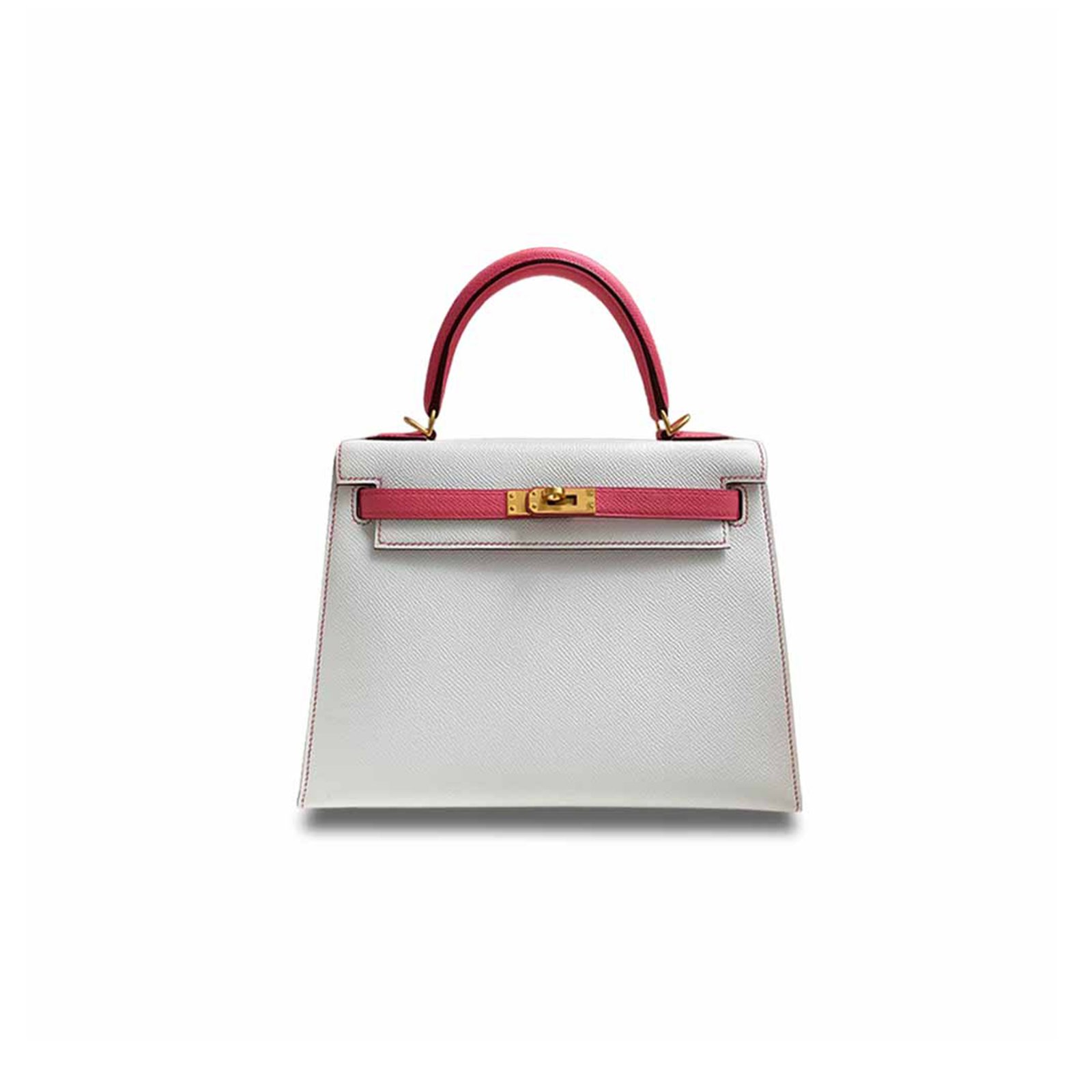HERM�S MASTER KELLY 25 EPSOM WHITE LIPSTICK PINK BRUSHED GOLD BUCKLE (25*17*7cm)