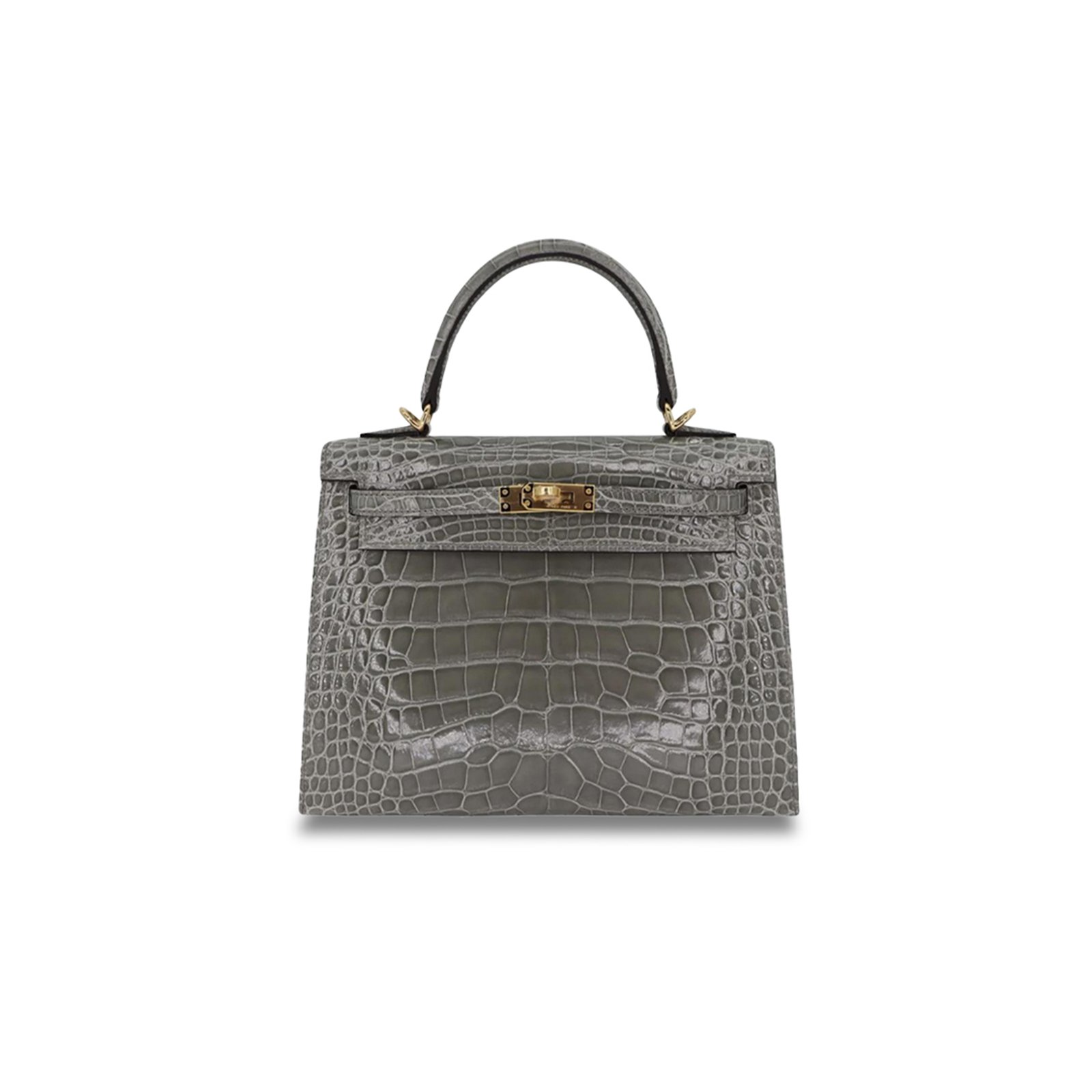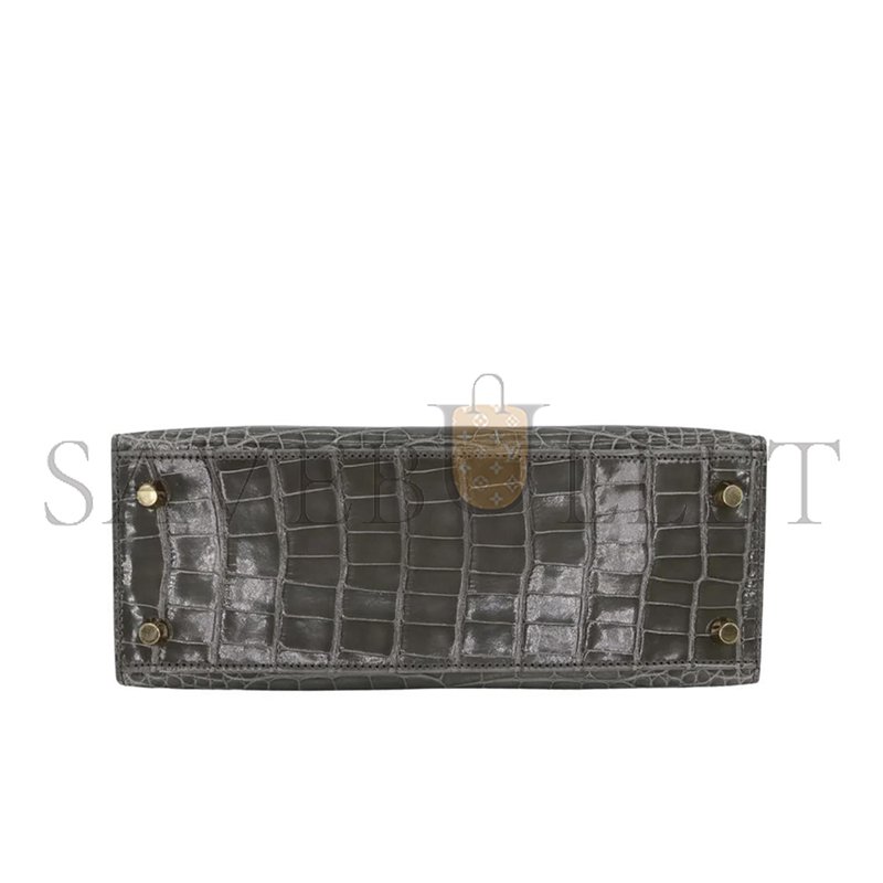 HERM�S MASTER KELLY 25 SELLIER GRIS CEMENT SHINY ALLIGATOR GOLD HARDWARE (25*17*7cm)