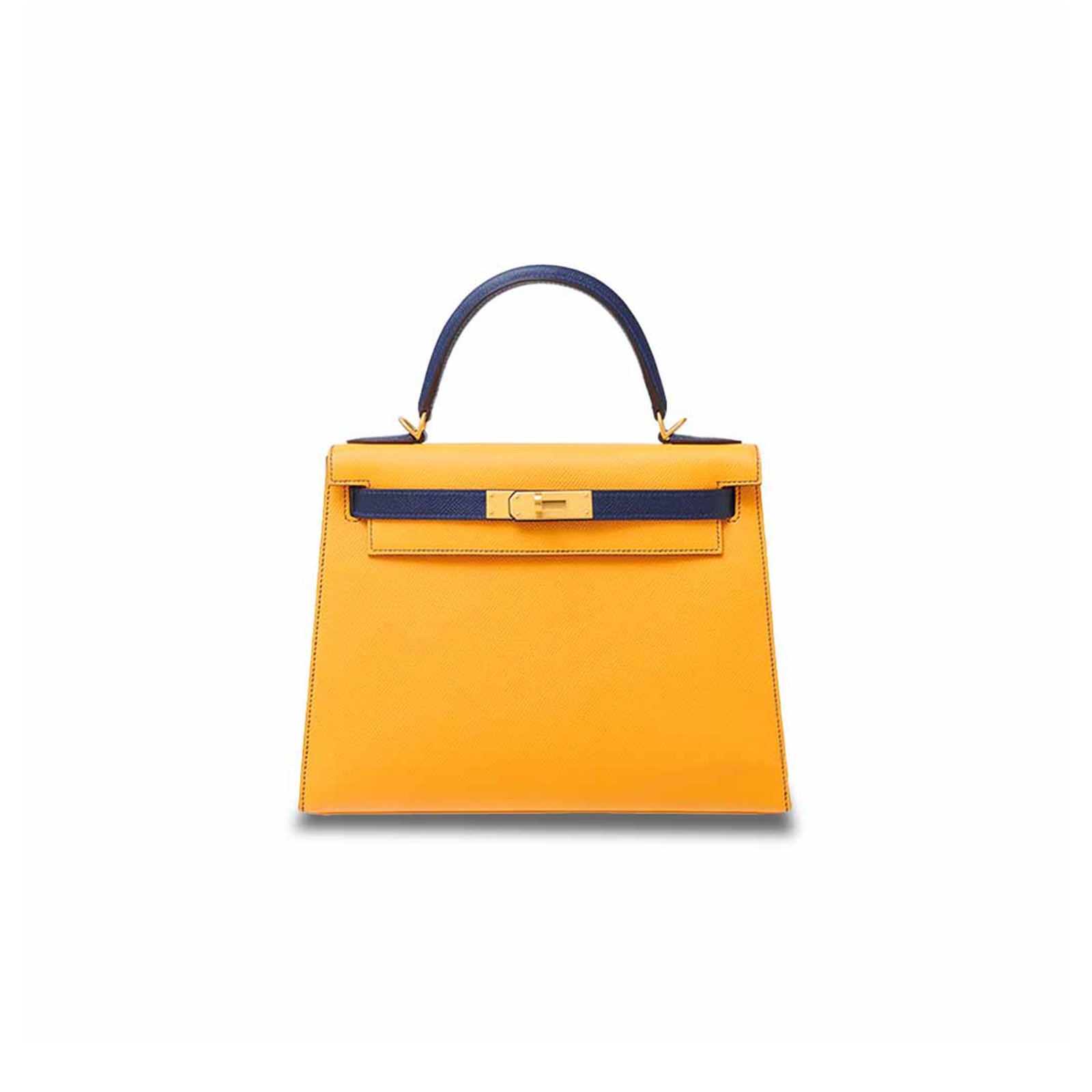 HERM�S MASTER KELLY 28 EPSOM SUN YELLOW LIGHT BLUE GOLD BUCKLE (28*22*10cm)