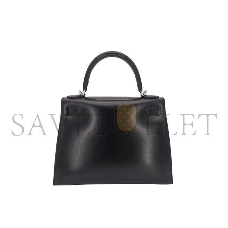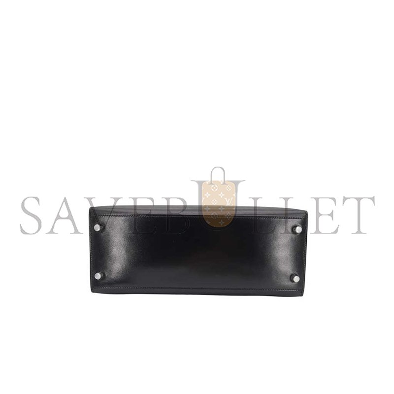 HERM�S MASTER KELLY 28 SELLIER BLACK BOX CALF LEATHER PALLADIUM HARDWARE (28*22*10cm)