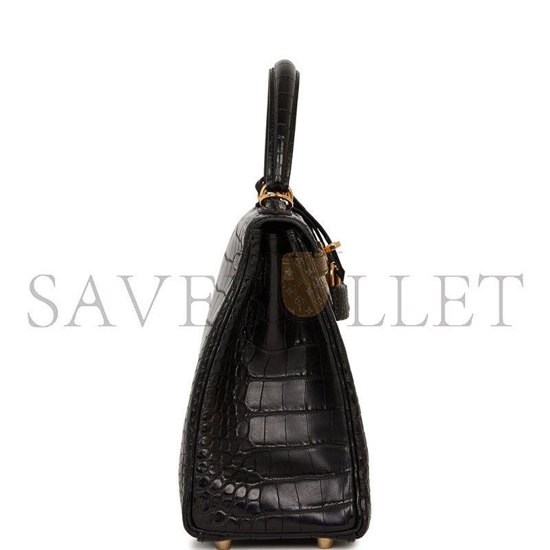 HERM�S MASTER KELLY RETOURNE 25 BLACK MATTE ALLIGATOR GOLD HARDWARE (25*20*13cm)