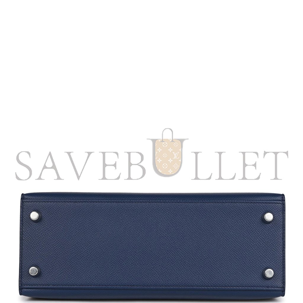 HERM�S MASTER KELLY SELLIER 28 BLEU SAPHIR EPSOM PALLADIUM HARDWARE (28*22*10cm)