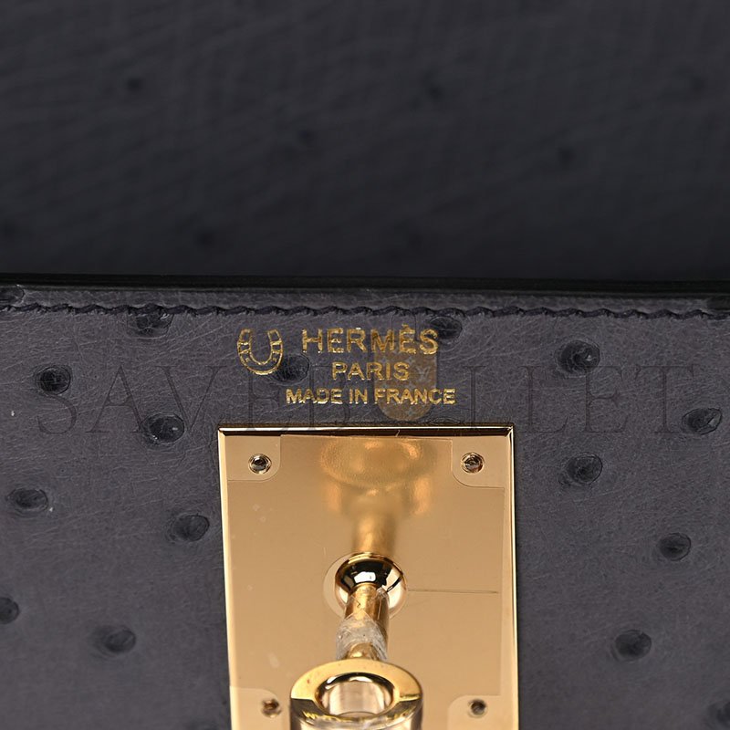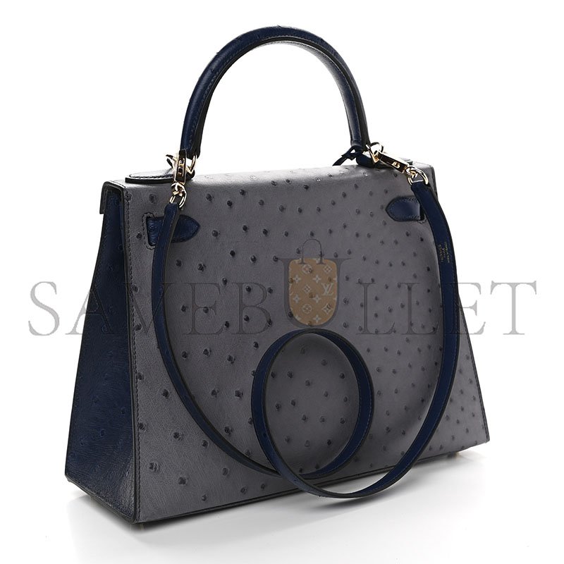 HERM�S MASTER OSTRICH HORSESHOE KELLY SELLIER 28 GRIS AGATE BLEU IRIS (28*22*10cm)