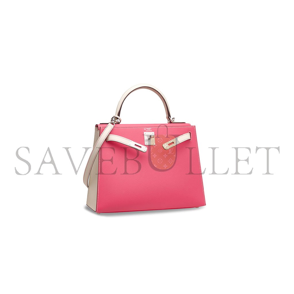 HERM�S MASTER ROSE AZAL�E & CRAIE EPSOM LEATHER SELLIER KELLY 25 WITH BRUSHED PALLADIUM HARDWARE (25*17*7cm)