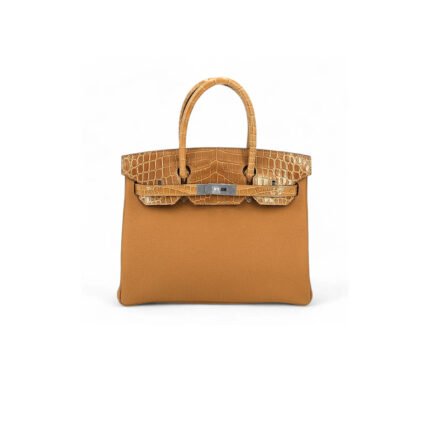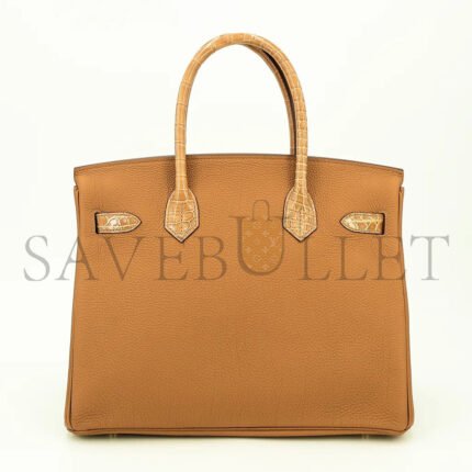 $1,759.00HERM�S MASTER BIRKIN 25 CROCODILE AND TOGO LEATHER GOLDEN BROWN SILVER BUCKLE H076216CK44 (25*20*13cm)