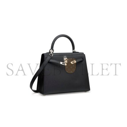 HERM�S MASTER A BLACK EPSOM LEATHER SELLIER KELLY 25 WITH PALLADIUM HARDWARE (25*17*7cm)