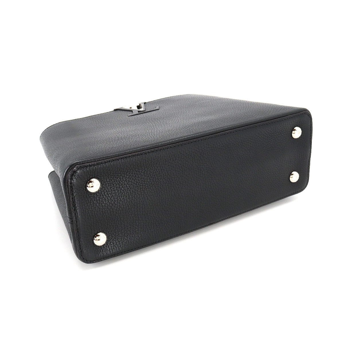 Taking its name from the Rue des Capucines in Paris, where Louis Vuitton opened his first store in 1854, the elegant Capucines MM bag is a testament to fine leather craftsmanship. In full-grain Taurillon leather, it combines refined details, including a semi-rigid handle secured by jewel-like rings. Its distinctive flap can be worn two ways: outside to reveal the outline of a Monogram flower, or inside to show the LV initials.