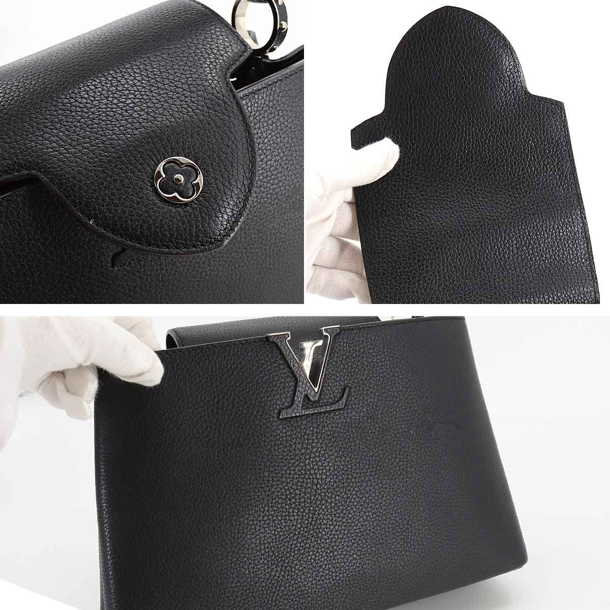 Taking its name from the Rue des Capucines in Paris, where Louis Vuitton opened his first store in 1854, the elegant Capucines MM bag is a testament to fine leather craftsmanship. In full-grain Taurillon leather, it combines refined details, including a semi-rigid handle secured by jewel-like rings. Its distinctive flap can be worn two ways: outside to reveal the outline of a Monogram flower, or inside to show the LV initials.