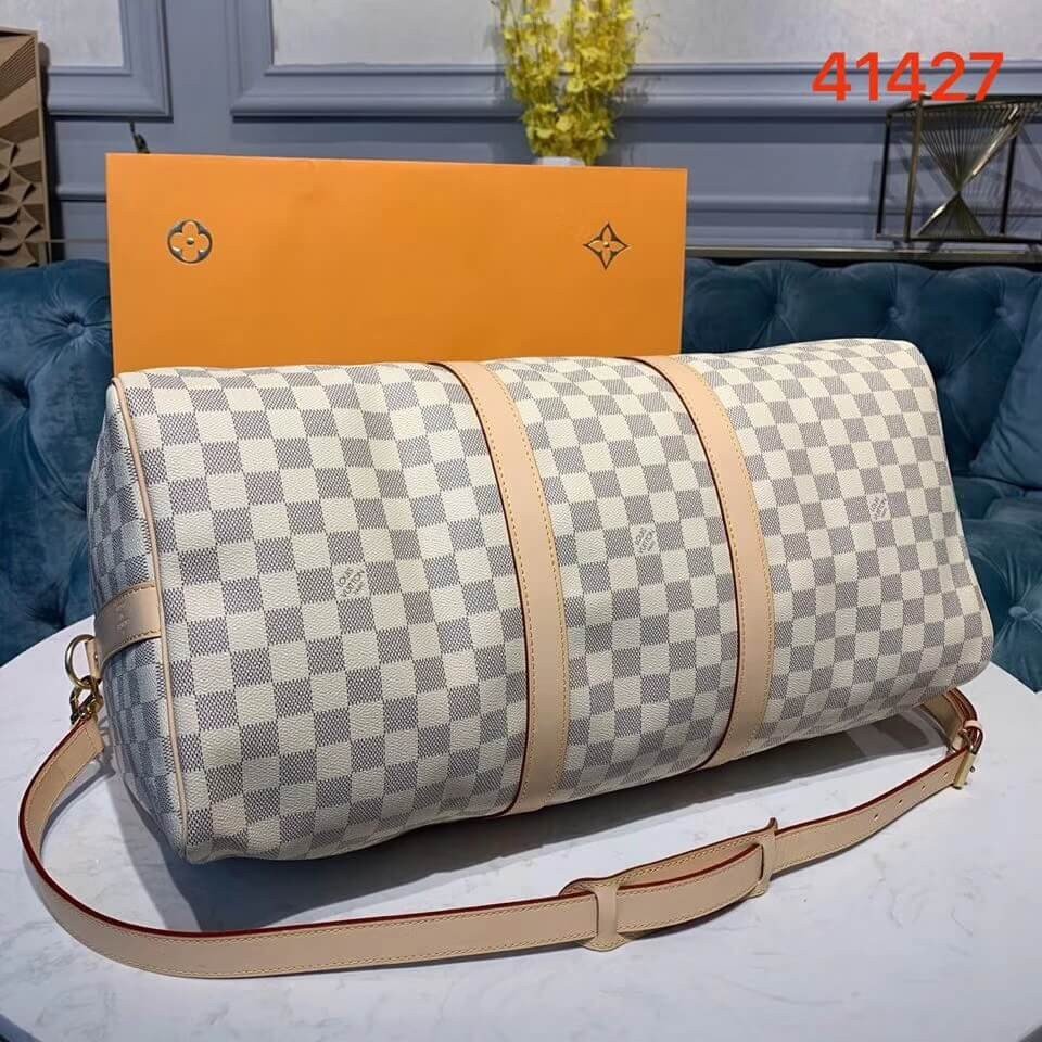 An icon since the appearance in 1930, the Keepall embodies the spirit of modern travel. Light, supple and always ready for immediate departure, the bag lives up to its name: those adept at the art of packing can easily fit a week’s wardrobe into the generously sized (and cabin-friendly) Keepall 50. Shown here in classic Damier Azur Canvas, with a strap for casual cross-body wear