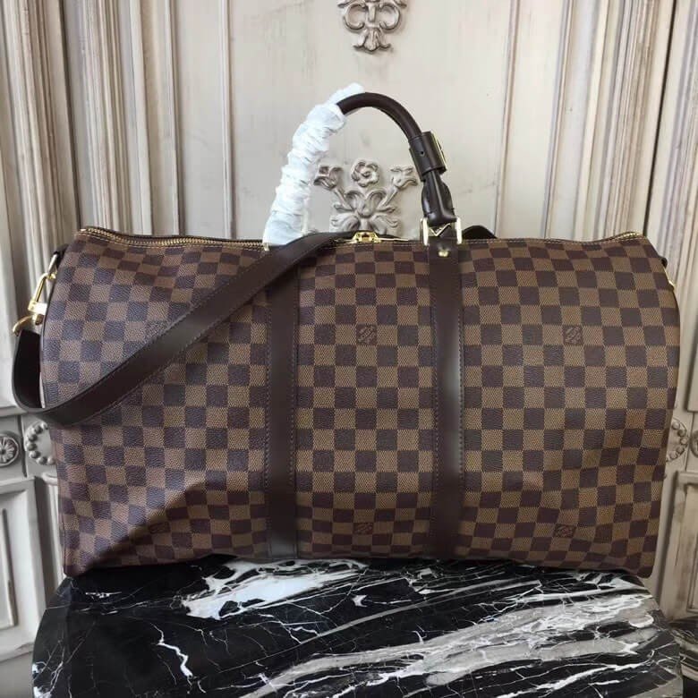 An icon since the appearance in 1930, the Keepall embodies the spirit of modern travel. Light, supple and always ready for immediate departure, the bag lives up to its name: those adept at the art of packing can easily fit a week’s wardrobe into the generously sized (and cabin-friendly) Keepall 50. Shown here in classic Damier Ebene Canvas, with a strap for casual cross-body wear